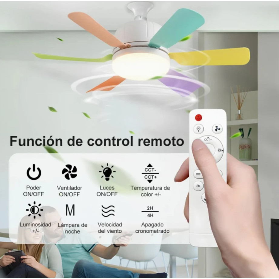Ventilador de Teto Com Luz 40w Led 3 Tipos de Luz + Controle Remoto Ventilador C/ 6 Hélices Bivolt