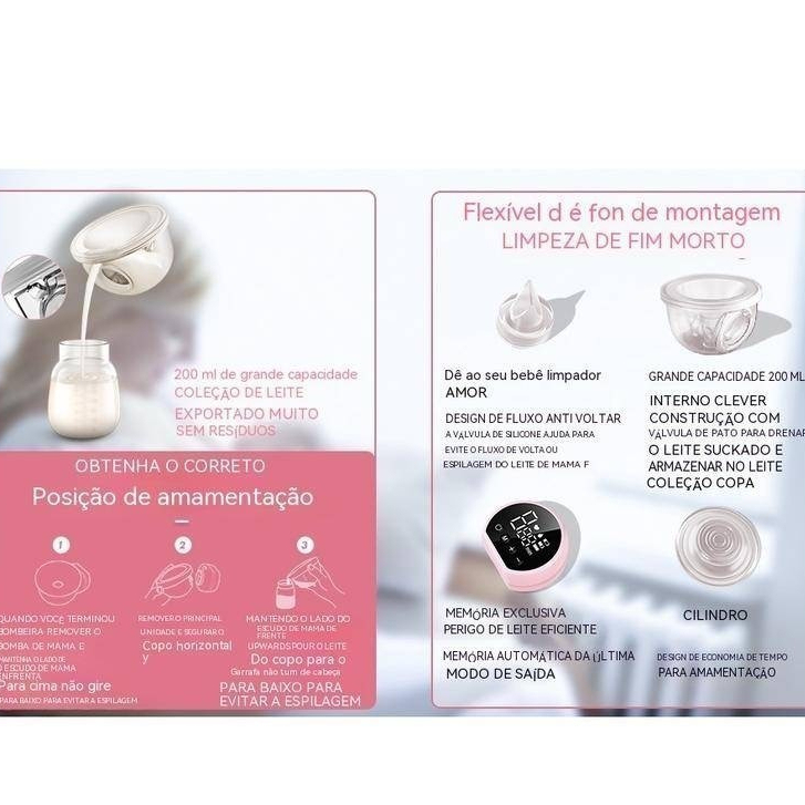Bomba De Leite Elétrica Portátil Com Visor LED Para Sucção De Amamentação