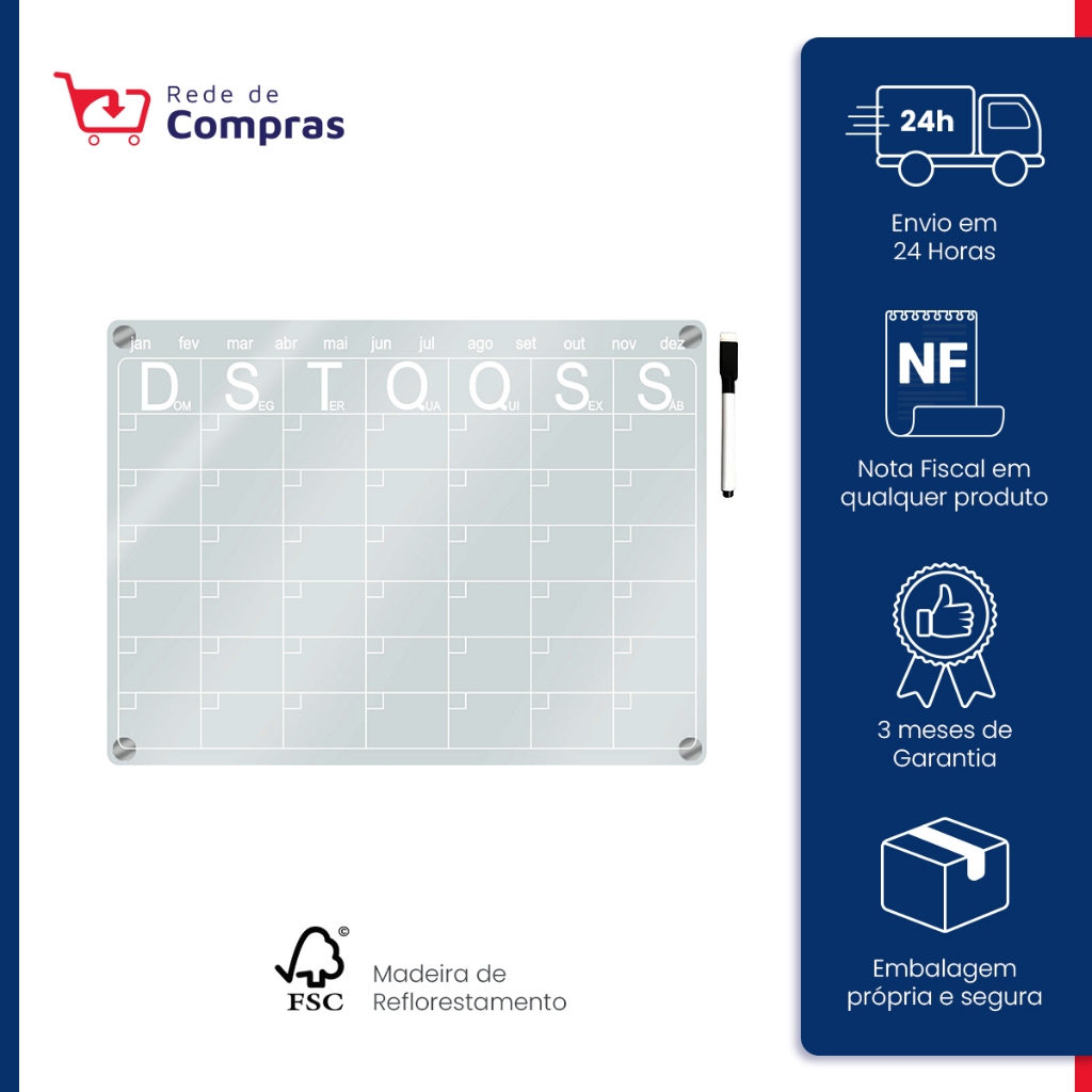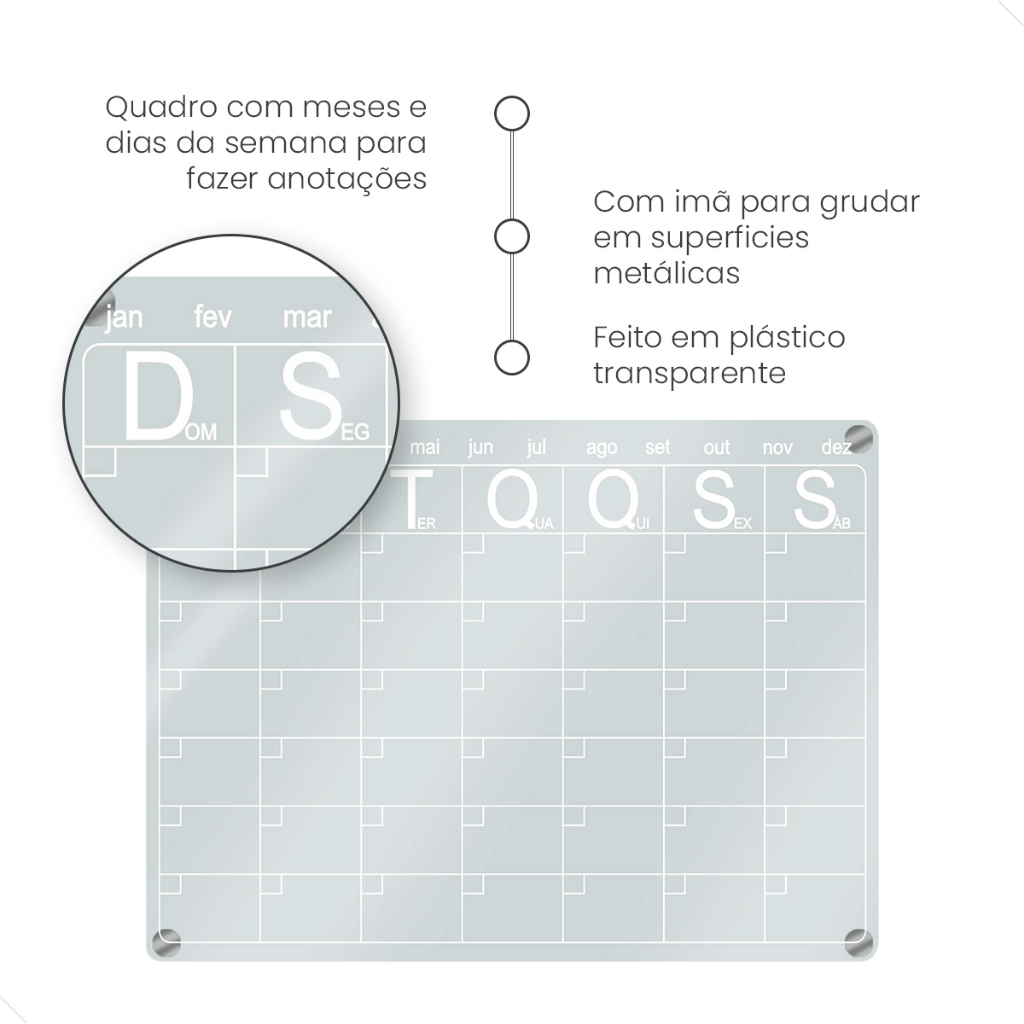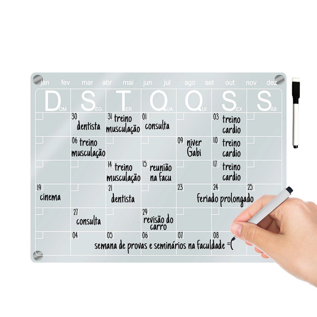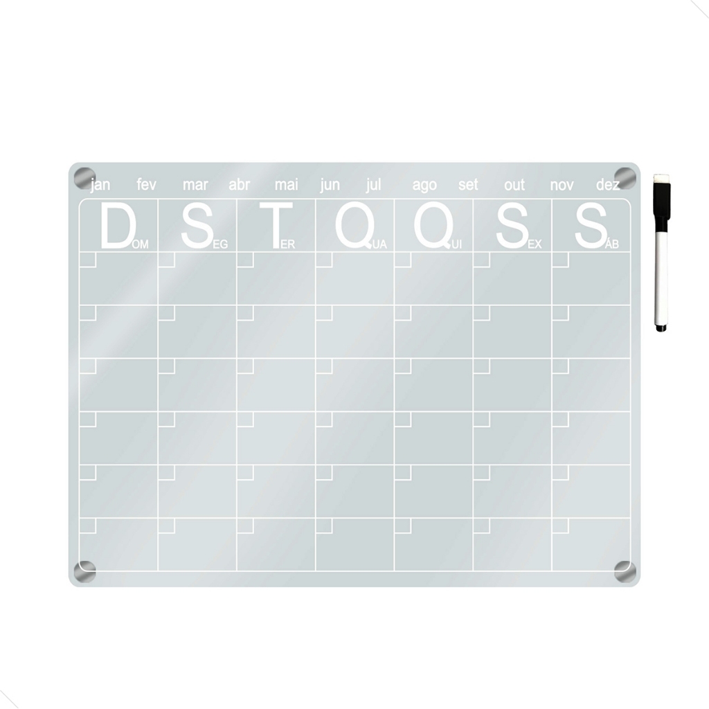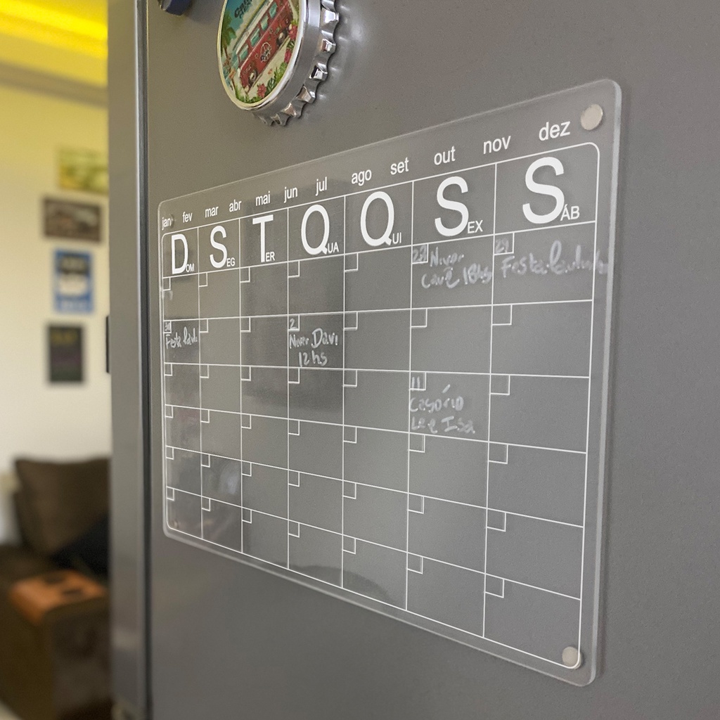 Lousa Magnética Planner Quadro Planejador Mensal Calendário Imã de Geladeira Decorativo + Caneta Preta Apagável 24x33 cm