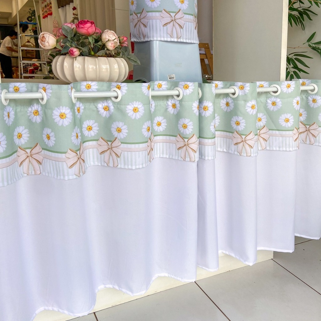 Cortina P/ Pia/Balcão/Vitro 2,20m X 80cm - Estampa Digital Margarida