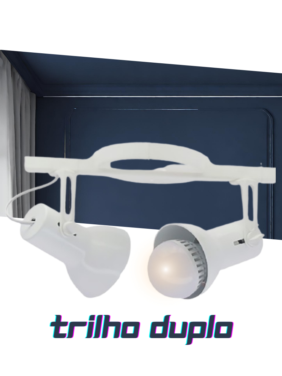 Spot Trilho Duplo Branco Sobrepor p/ Led 2 bocais Direcionável
