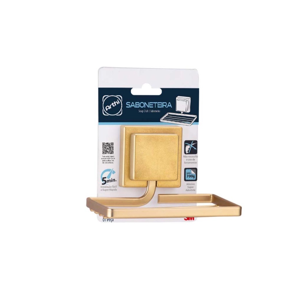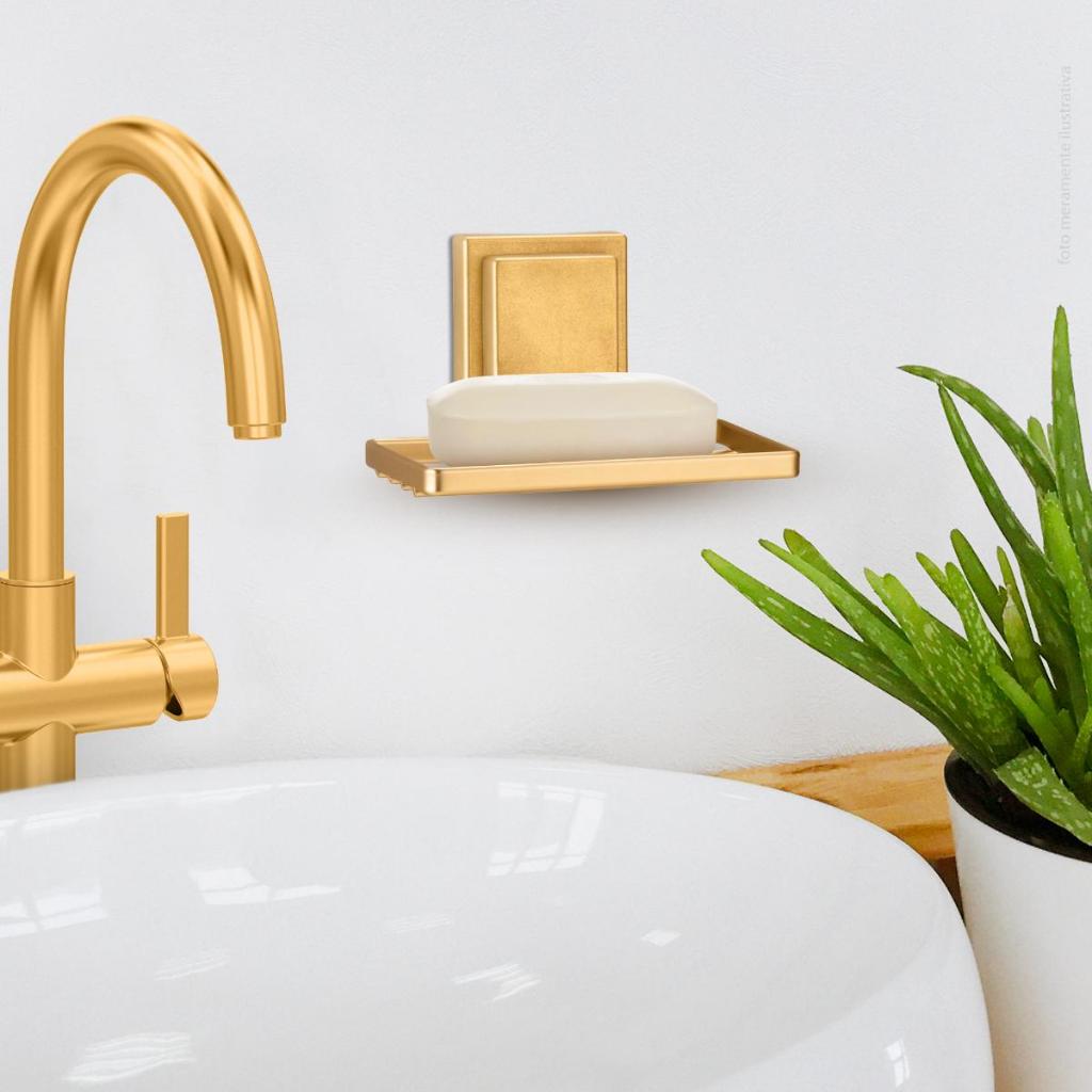 Saboneteira Aço Dourado Fixação Adesivo Fita 3M Sabonete