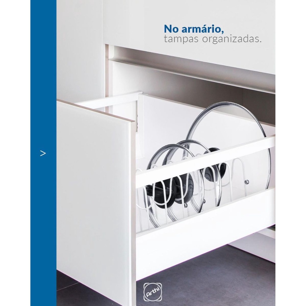 Organizador De Tampa Panela Potes Aço Branco 6 Divisões