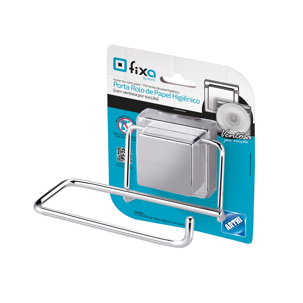 Porta Rolo De Papel Higiênico Com Fixação com Ventosa Por Sucção Aço Cromado Arthi