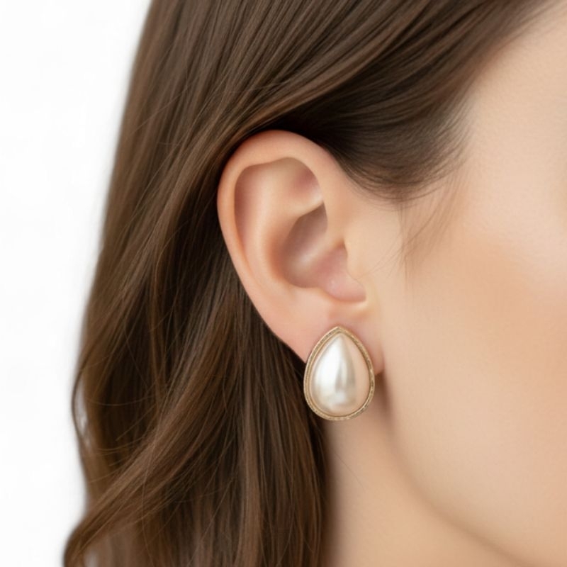 Brinco vintage de pressão pérola shell folheado a ouro gota/ coração/ quadrado/ círculo/ oval - Bijoux by Vivi