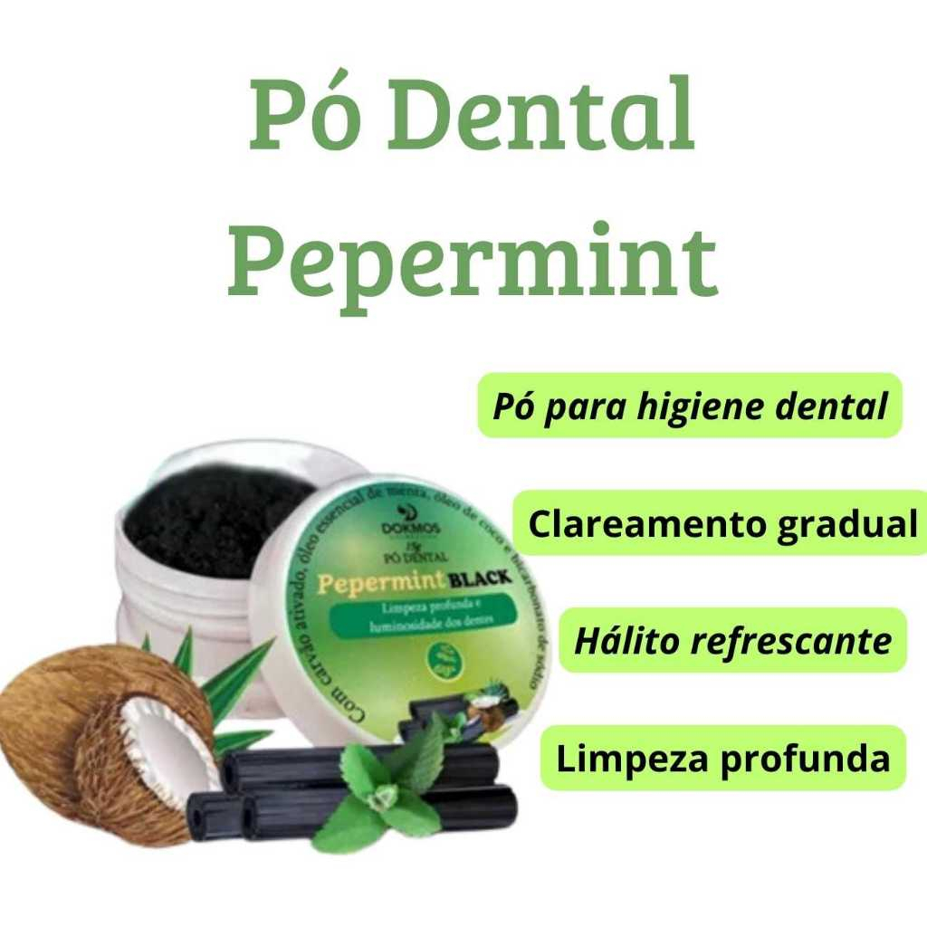 Pó Dental Pepermint Black Super Branco Natural Menta Coco Esfoliante Dental Tira Amarelo - Dokmos