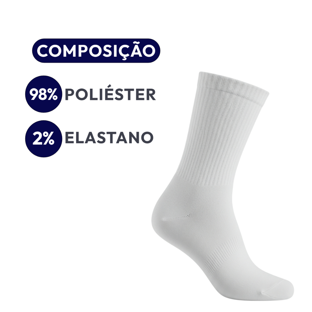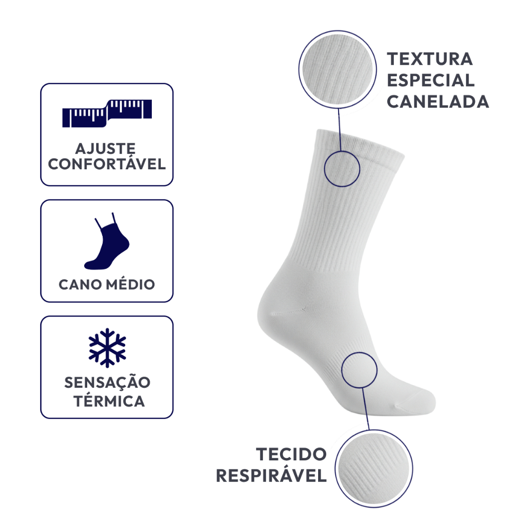 Kit 3 Pares de Meias Cano Médio Macia e Confortável Branca - QLC Sport