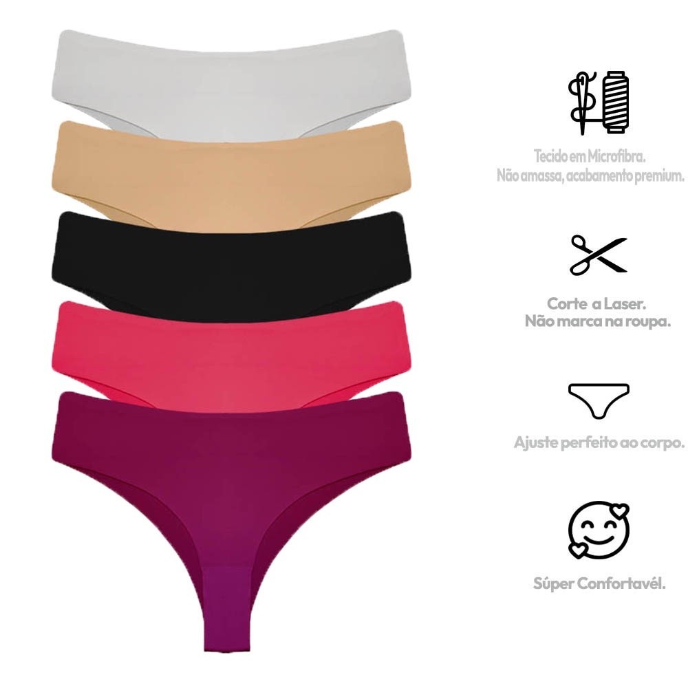 Kit Com 5 Calcinha Corte Laser Tanga Sortidas