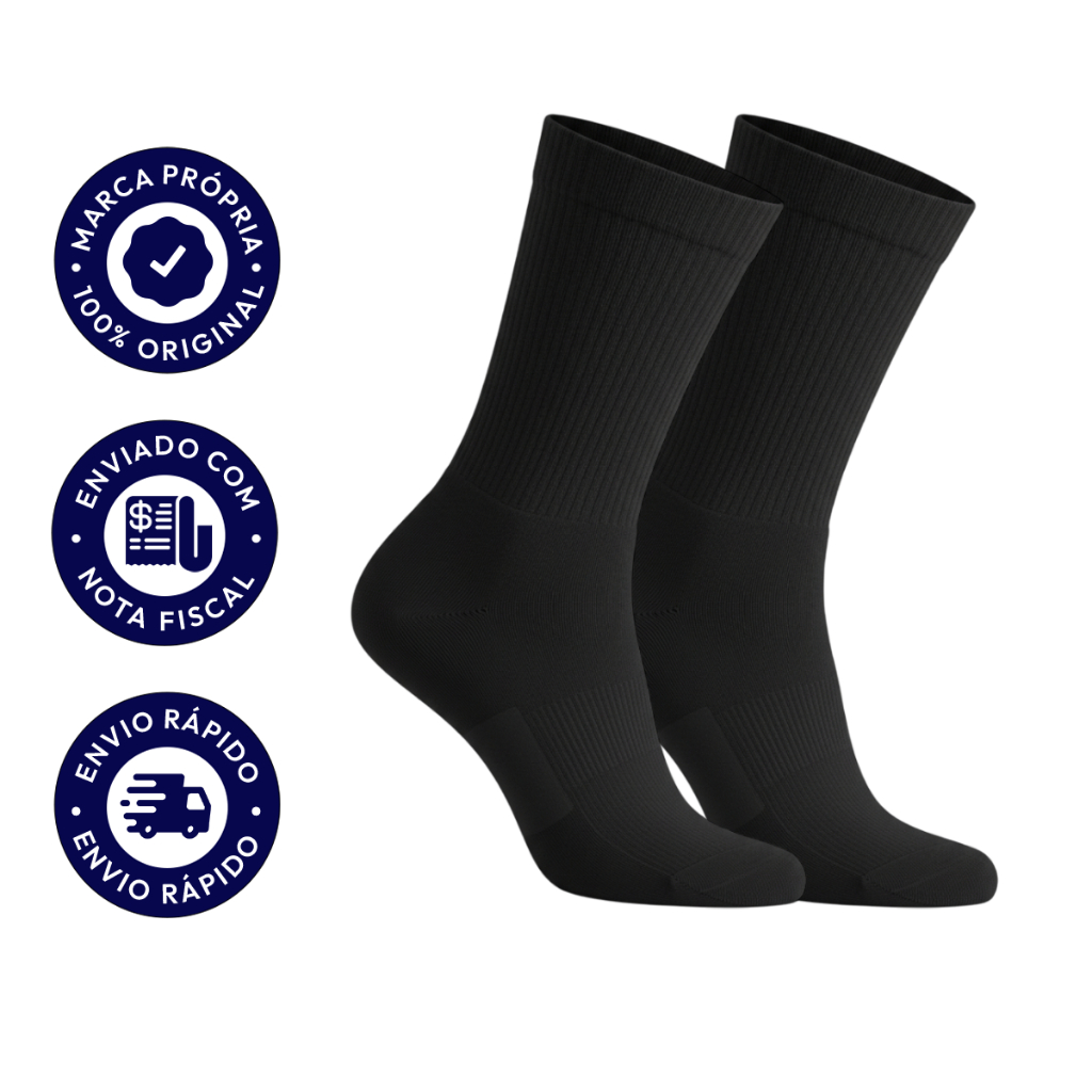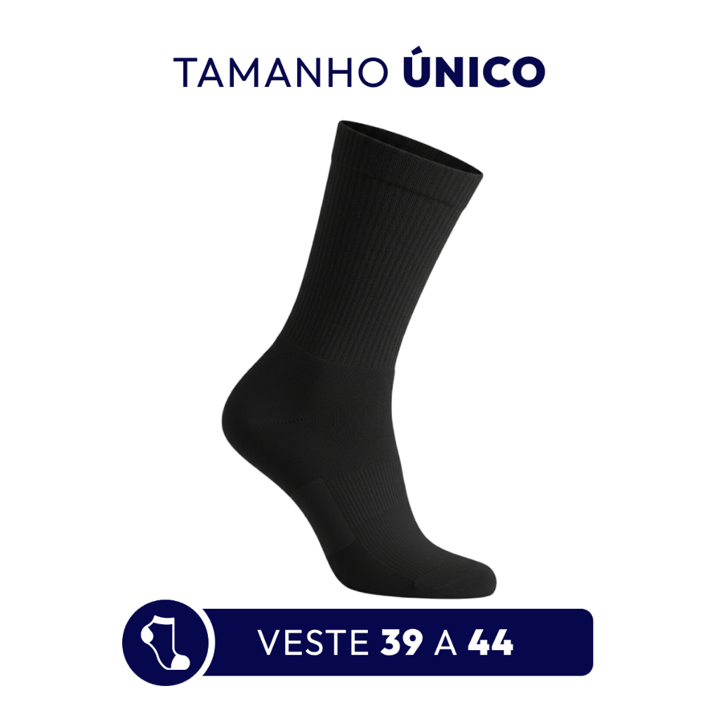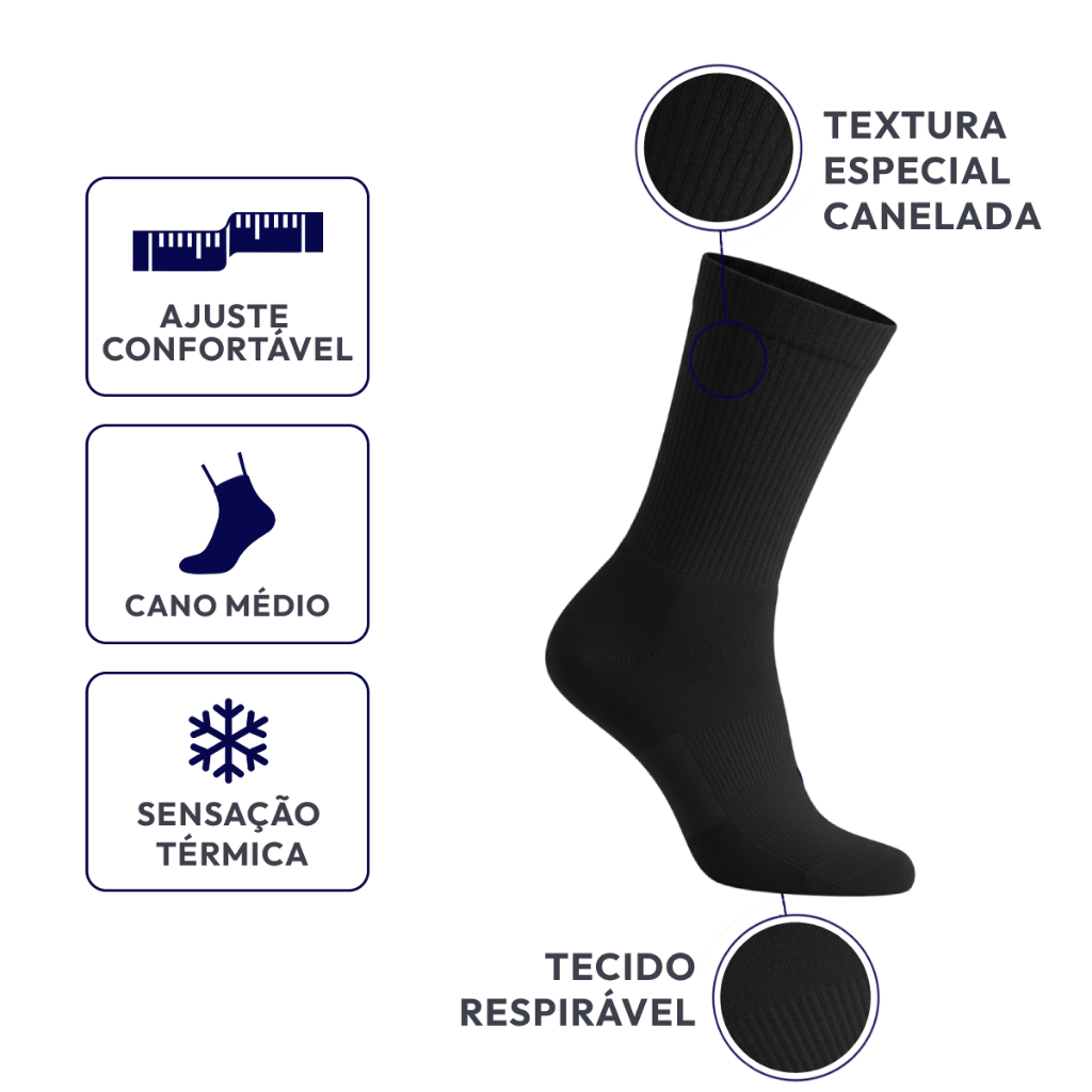 Meia de Algodão com Poliéster Cano Médio Preta Sport Macia e Confortável