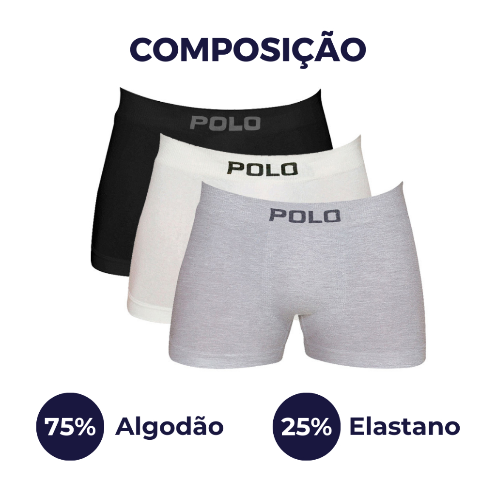 Kit C/3 Cuecas Boxer Polo 781 Algodão Sem Costura Sortido