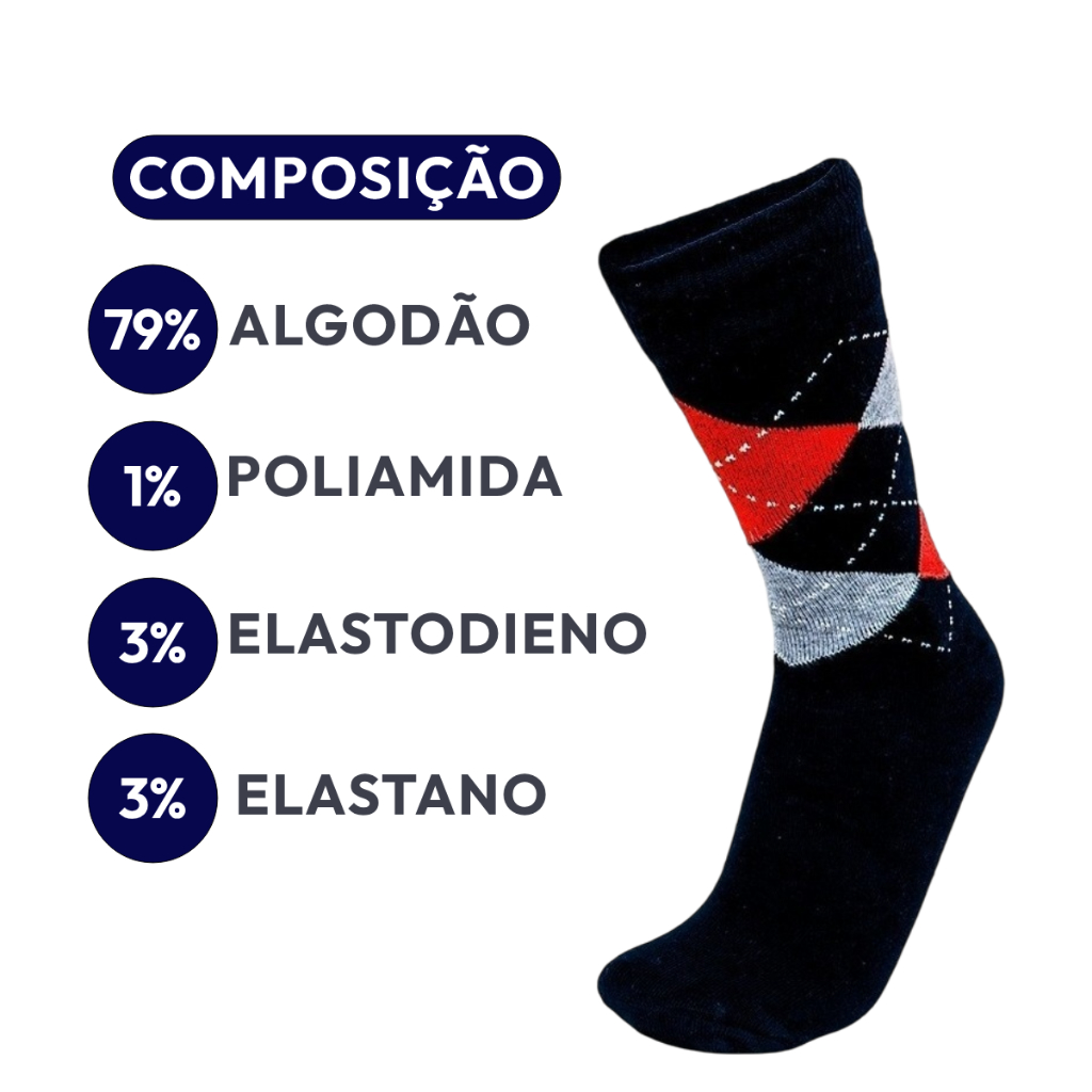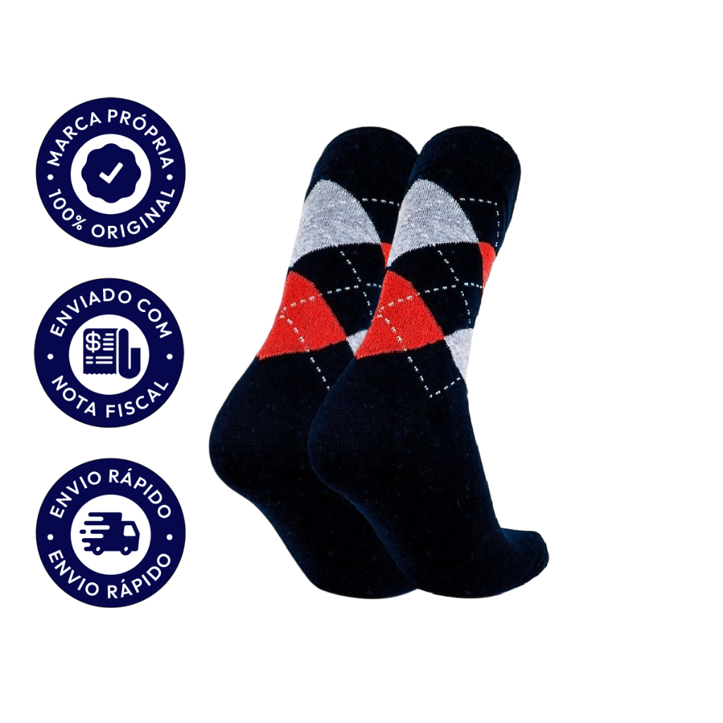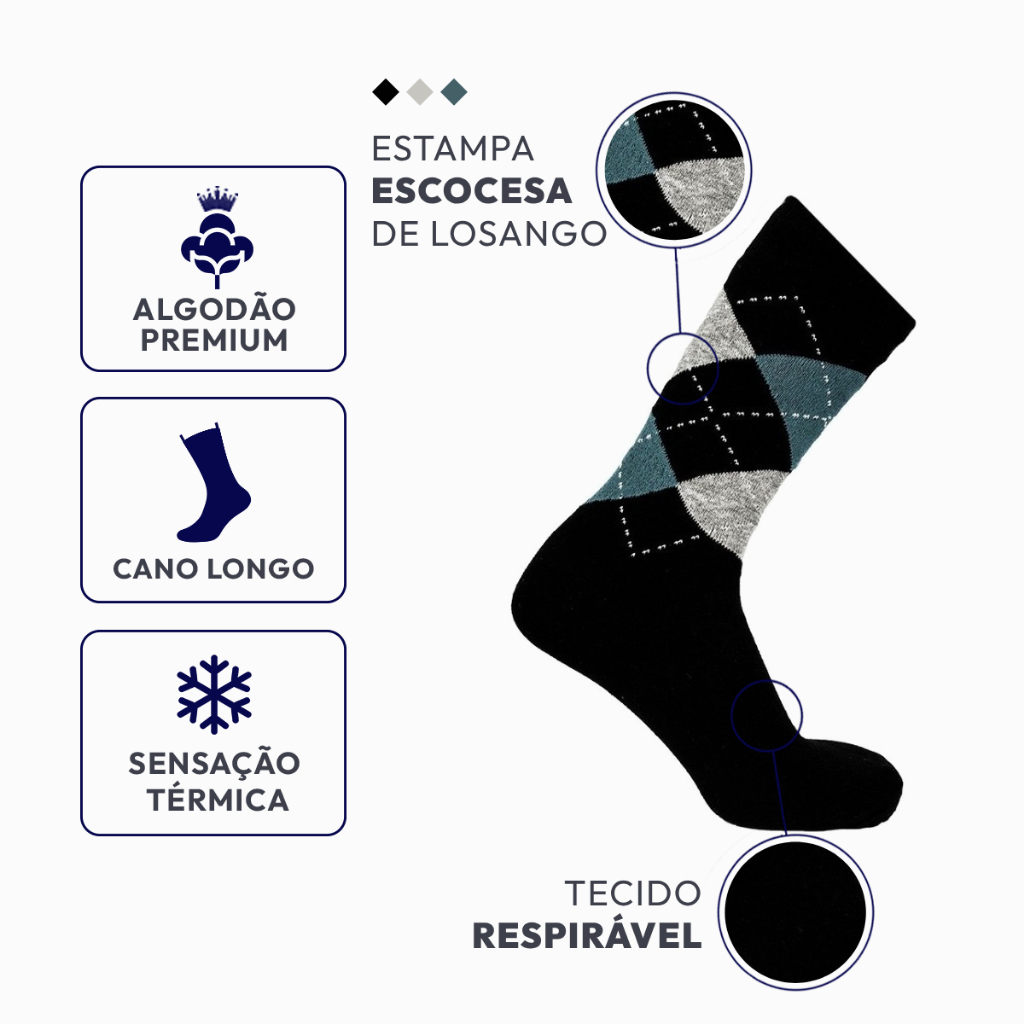 Meias Xadrez Escocesa Algodão S3 Masculina Social