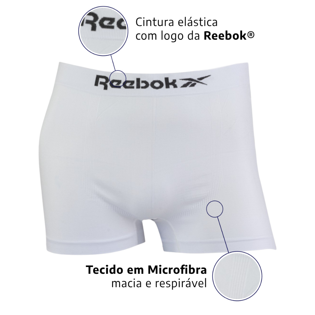 Kit 3 Cuecas Reebok Boxer Classic Microfibra Sortido