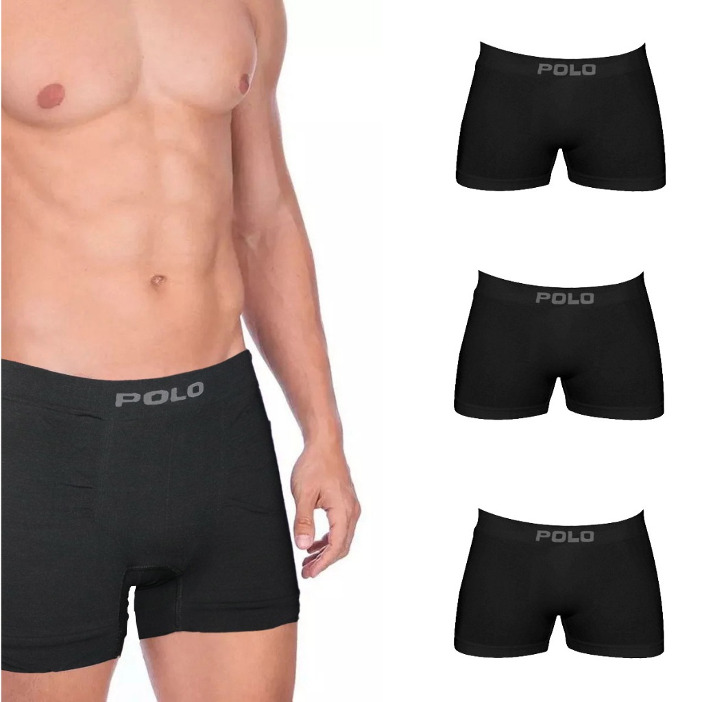 Kit C/10 Cuecas Boxer Polo 781 Algodão Masculina / Preto
