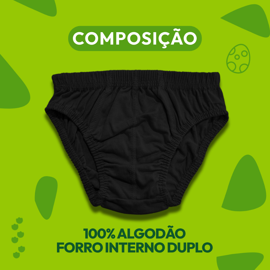 Kit 3 Cueca Infantil Premium 100% Algodão Forro Duplo Dino Menino Slip Tradicional Cuecas Criança