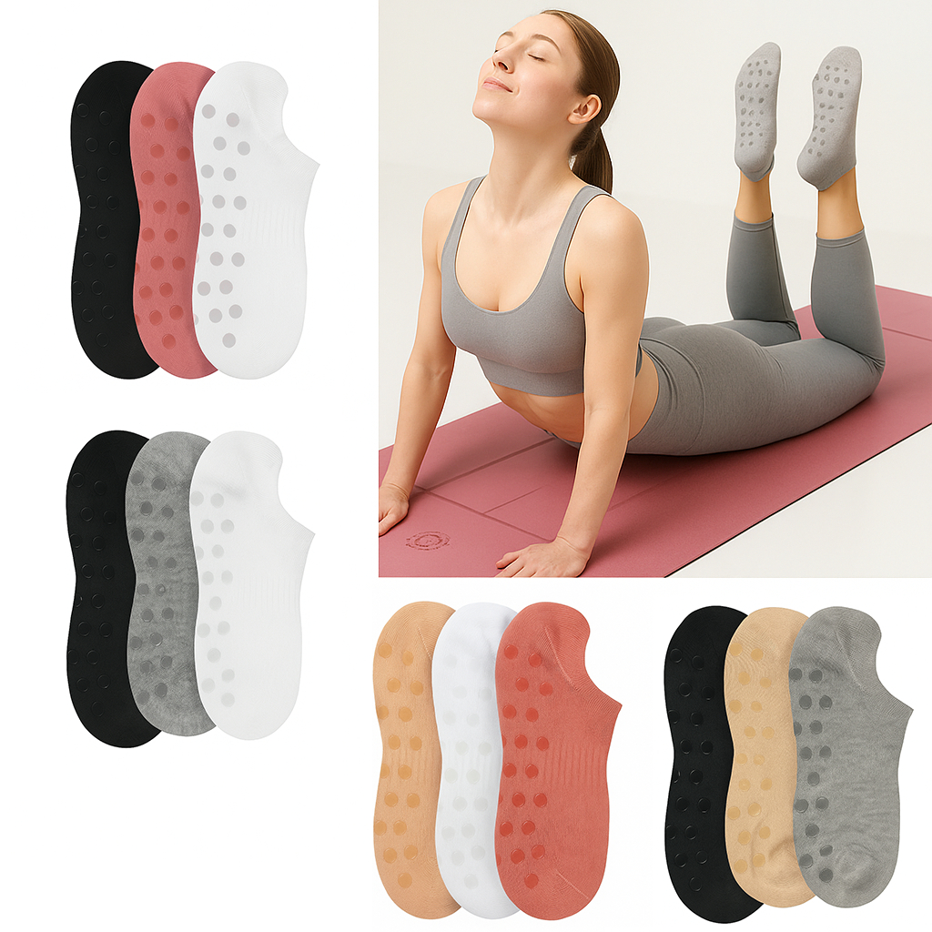 Kit 3 Pares Meias Antiderrapante Feminina Yoga Pilates Hidroginástica Academia Cross Bolinha Sortida