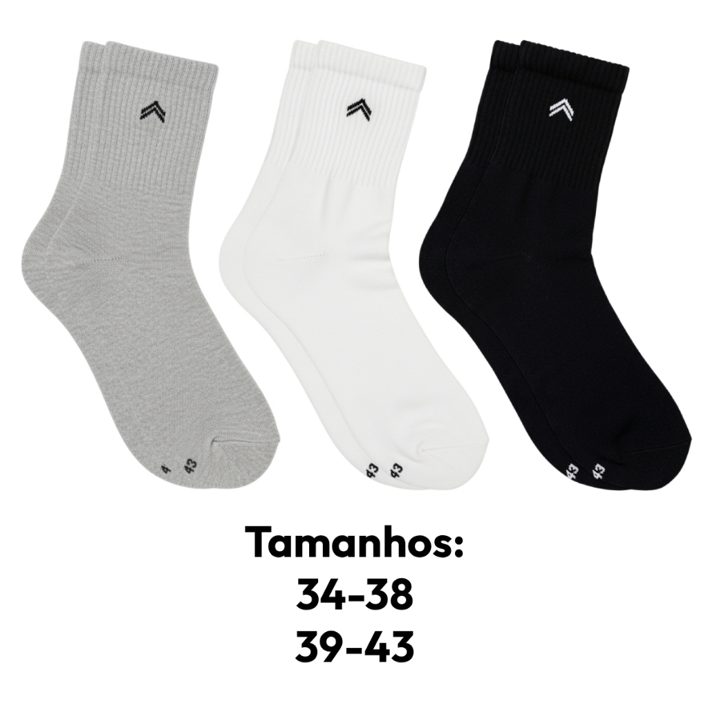 Kit 3 Pares Meias Cano Médio Algodão Penteado Atoalhada Ultra Confortável Up Original 3245