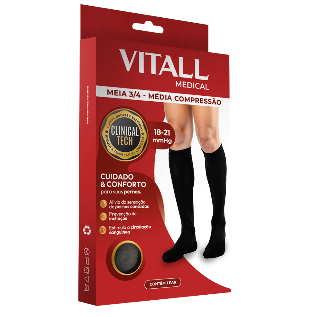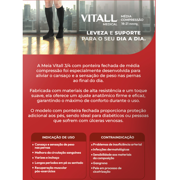 Meia 3/4 Média Compressão 1802 Com Ponteira - 18-21 mmHg Varizes Inchaço Trabalho Pé Sentado Vitall