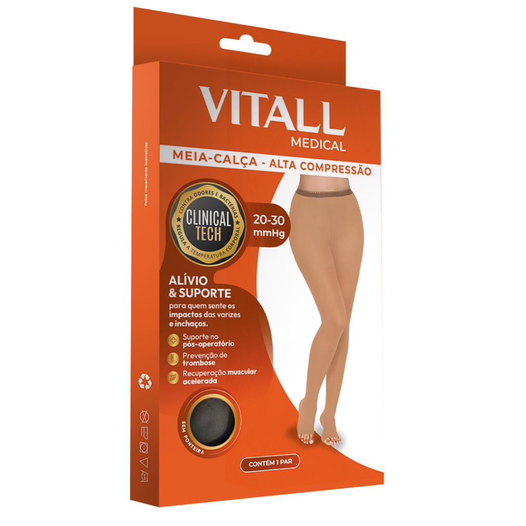 Meia Calça Alta Compressão Sem Ponteira 20-30 mmHg Vitall Medical 1891