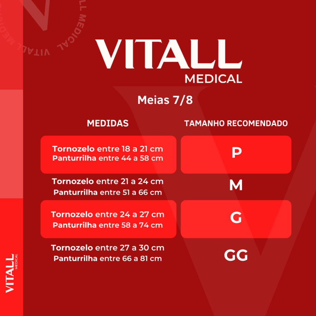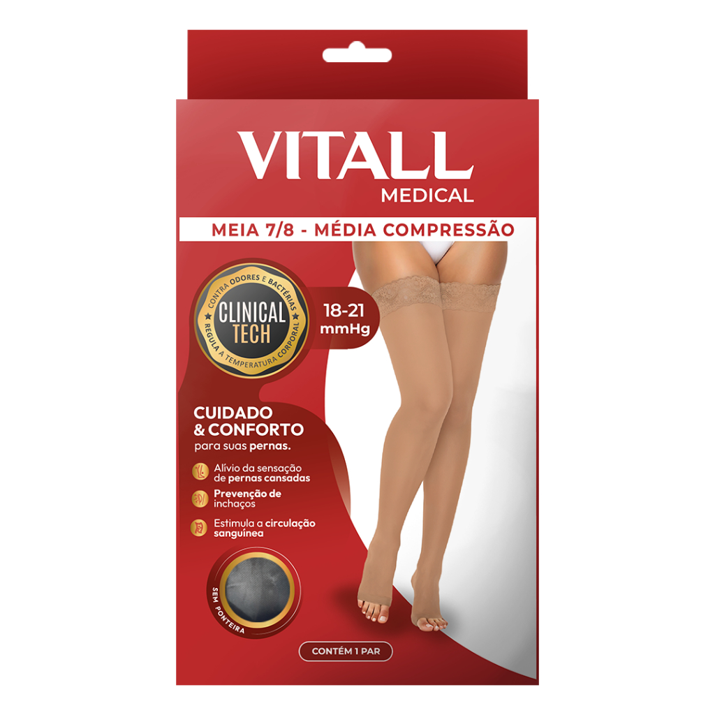 Meia 7/8 Vitall Medical 1712 Média Compressão Sem Ponteira 18-21 mmHg Feminino