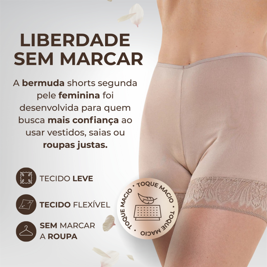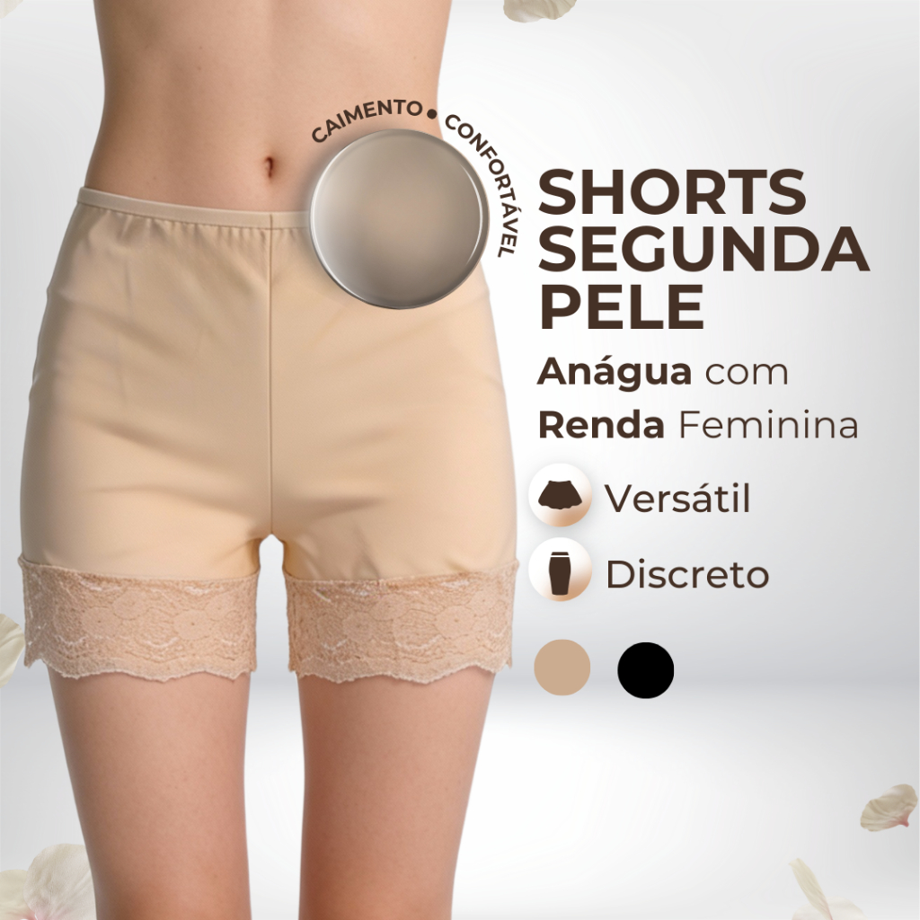 Shorts Bermuda Segunda Pele Modeladora Anágua Renda Cintura Alta Feminina Microfibra Shapewear
