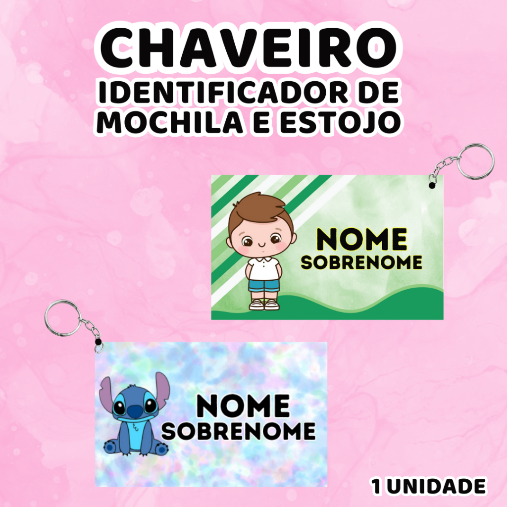 Chaveiro identificador de mochila e estojo 1 unidade