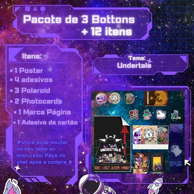Bottons undertale Broches /Pin/tamanho 3,5cm pacotes atacado