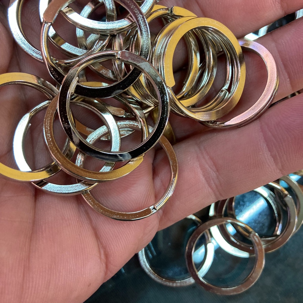 Argola chata italiana c/ correntinha elo para chaveiros 25mm
