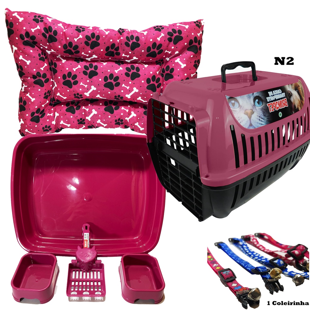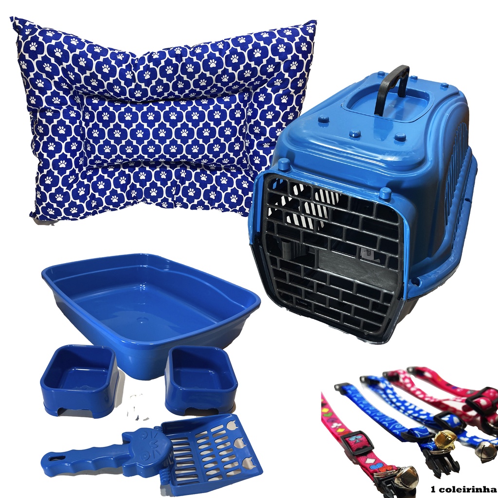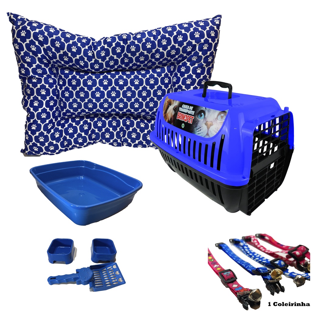 Kit Completo Para Gato 7 Peças Premium Colchonete Caixa de Areia Transporte Comedouro Coleira Pá