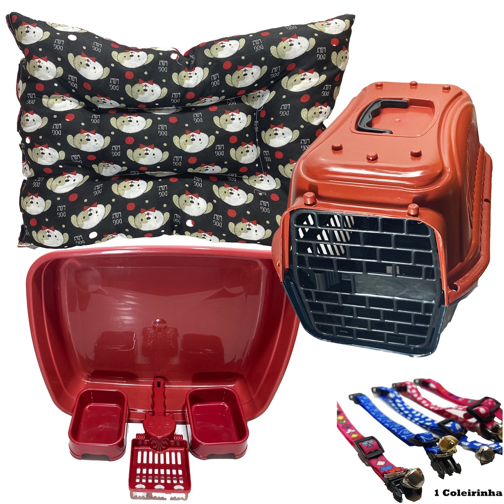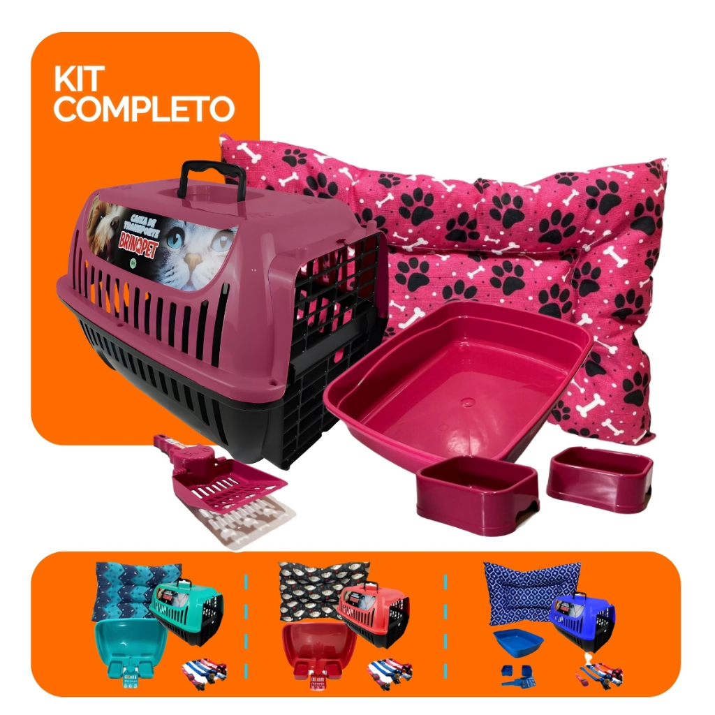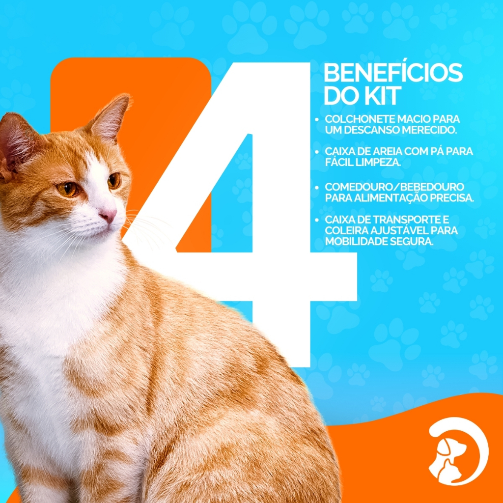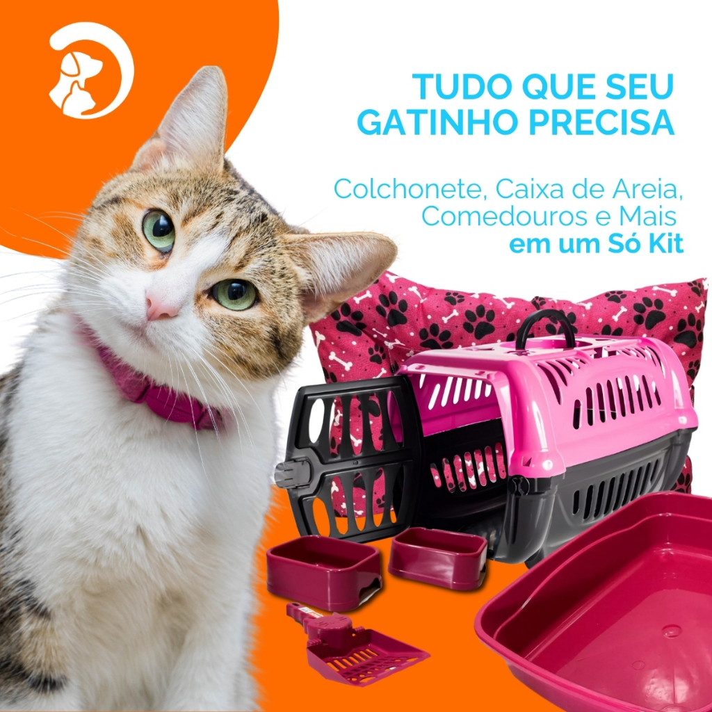Kit Completo Para Gato 7 Peças Premium Colchonete Caixa de Areia Transporte Comedouro Coleira Pá