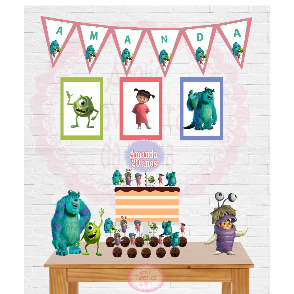 Kit Festa em Casa Monstros S/A (Menina) - Só um bolinho - Fazemos Todos os Temas (Nos pergunte pelo chat!)
