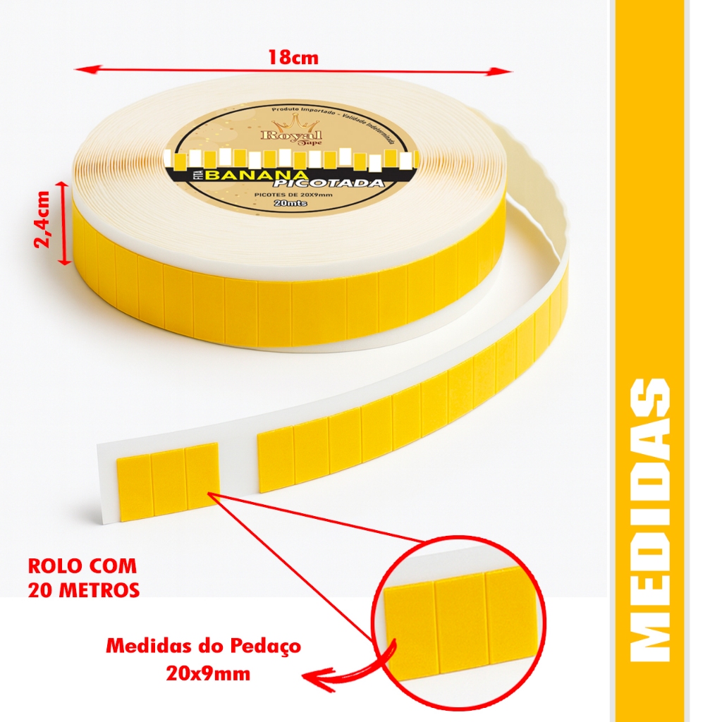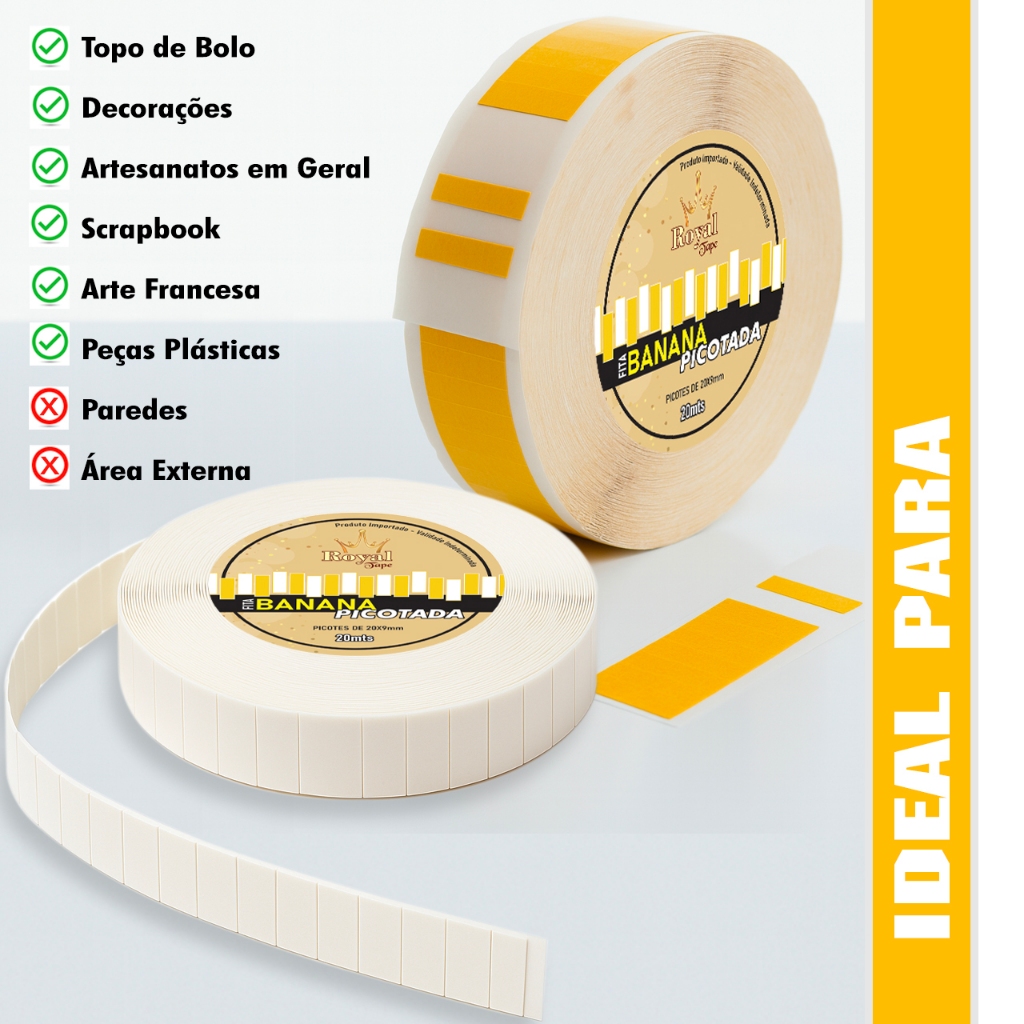 Fita Dupla Face Banana Picotada Espuma 20 metros x 20mm - Picotes de 2x1 cm aprox 2200 pedacos Topo Bolo Arteasanato
