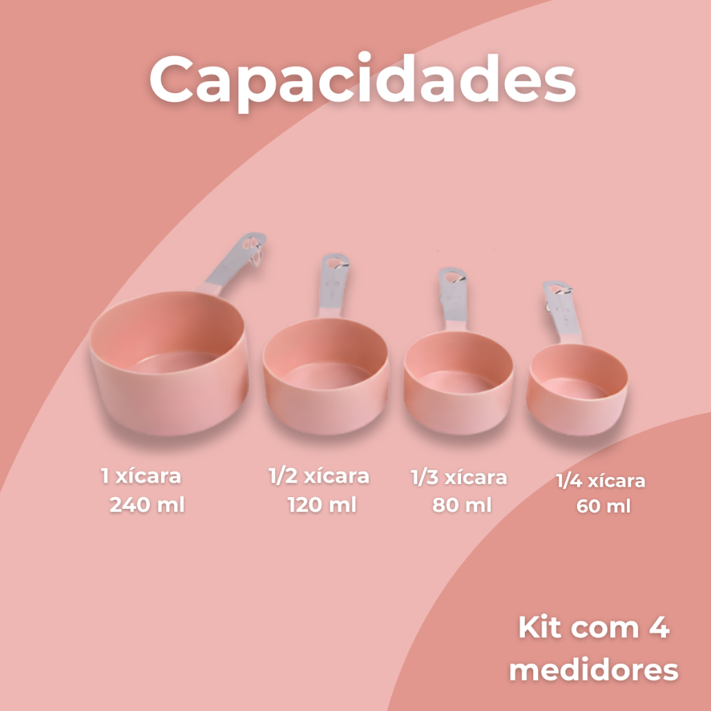 Conjunto Medidoras De Xícaras 4 Peças Luxo Alta Qualidade Tamanhos 240ml 120ml 80ml 60ml - Hercules