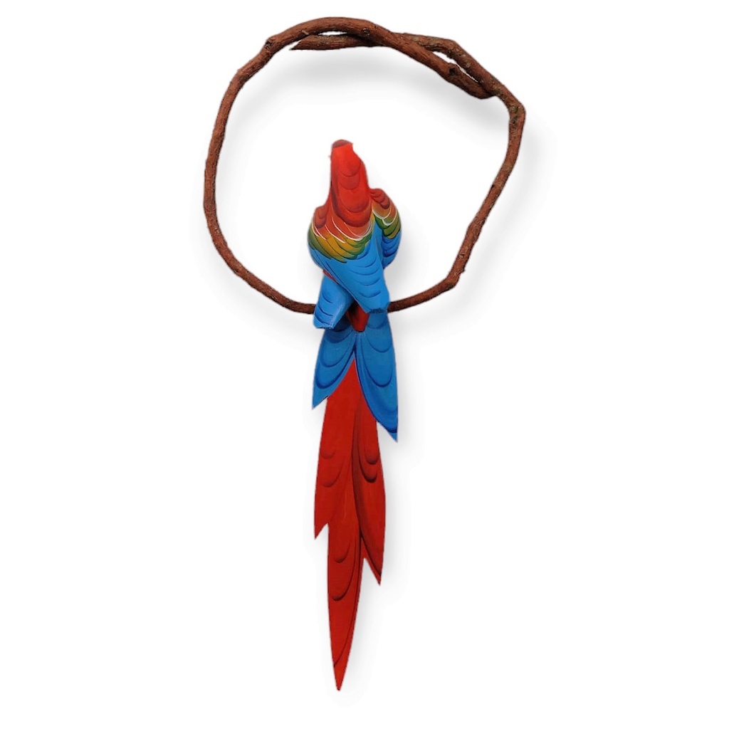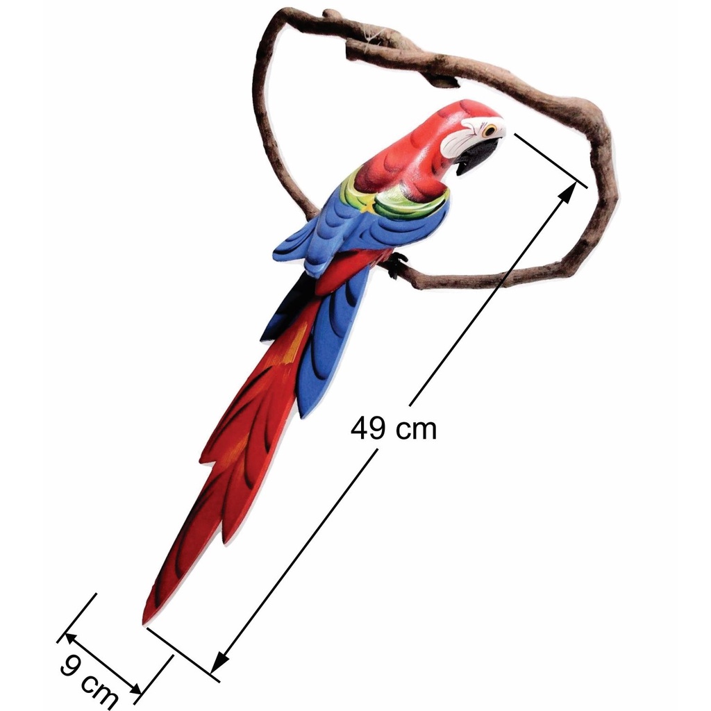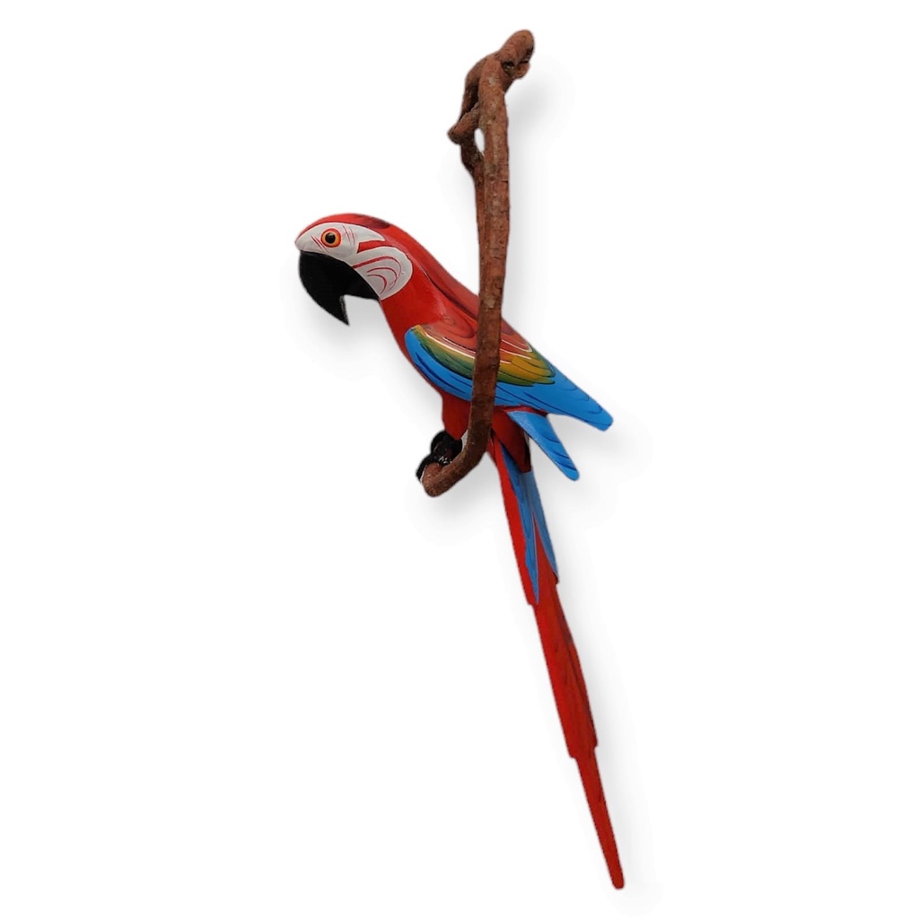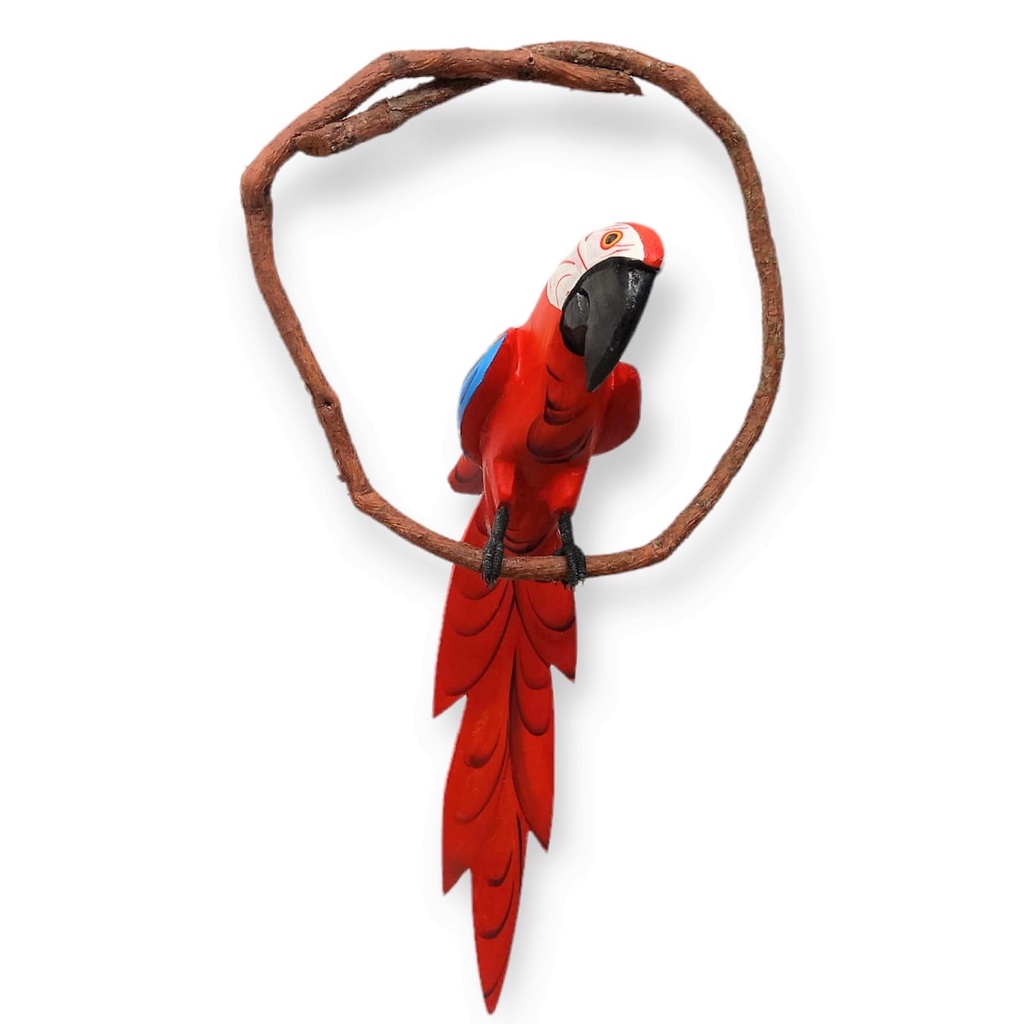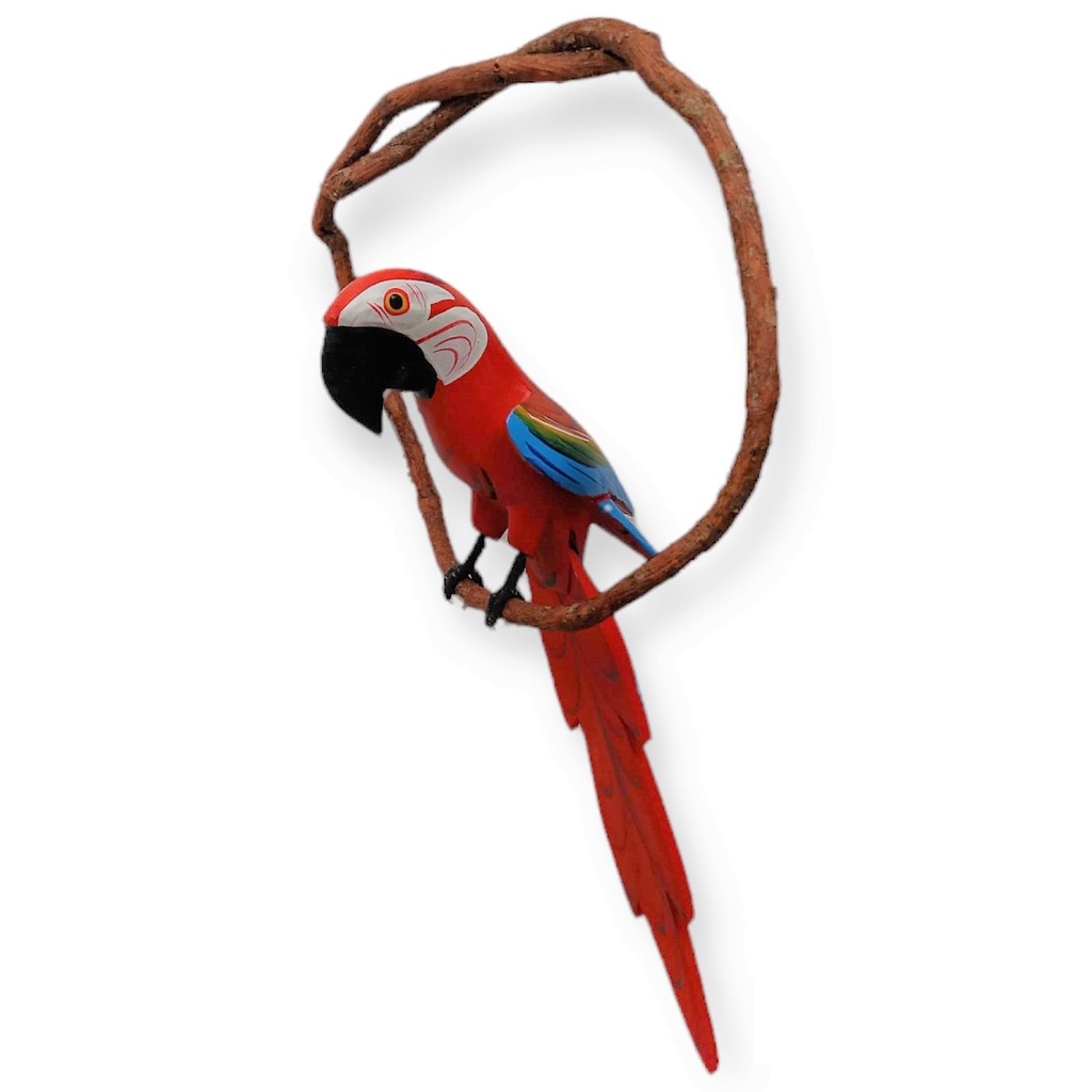 Arara De Galho PP - Vermelha - Madeira Passaro Natureza Artesanato