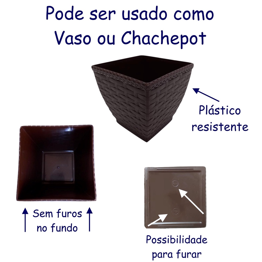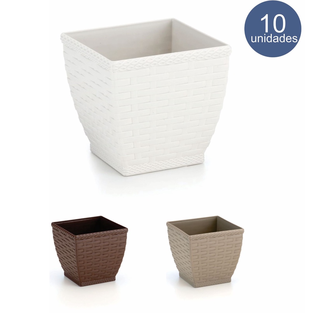 Cachepos Rattan Quadrado Mini - Kit 10 Unidades Vaso Azaleia Orquidea
