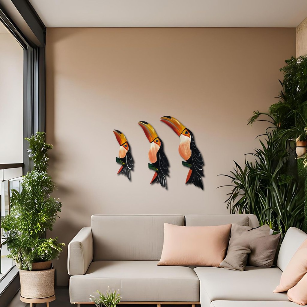 Trio De Tucano GG Quadro Decorativo Casa Jardim Varanda Sala