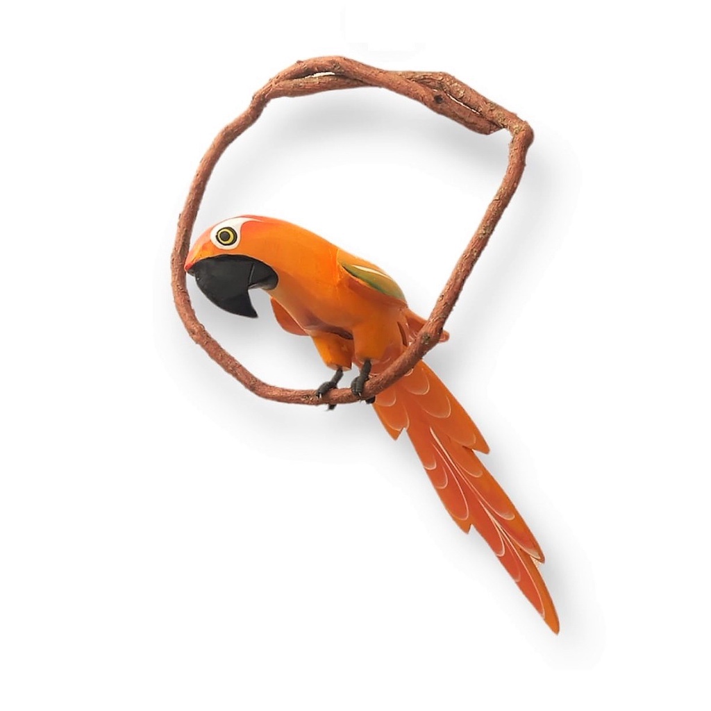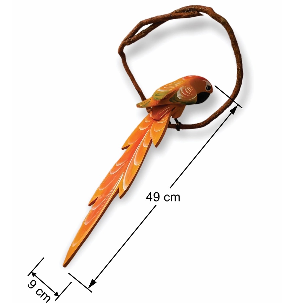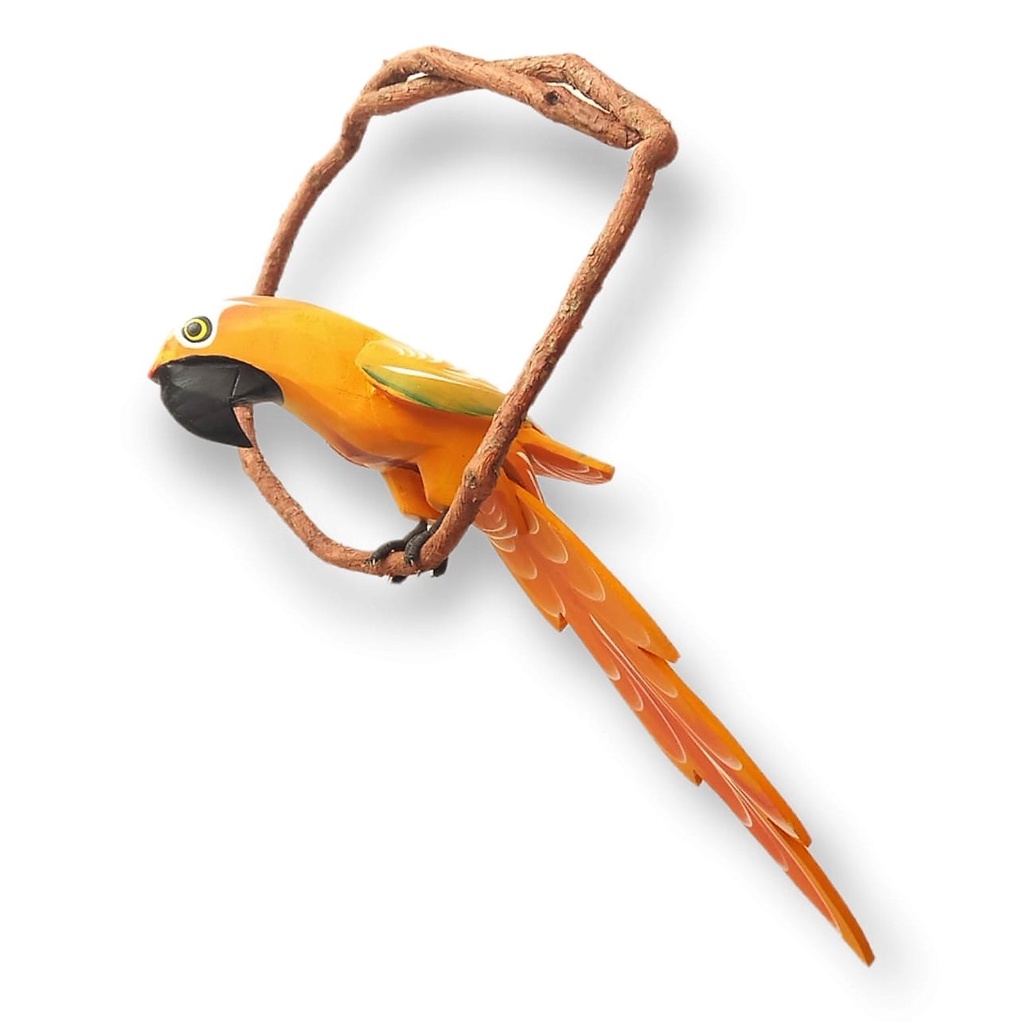 Arara De Galho PP - Amarela C/ Verde - Madeira Para Decorar Seu Jardim Casa Sitio Pomar
