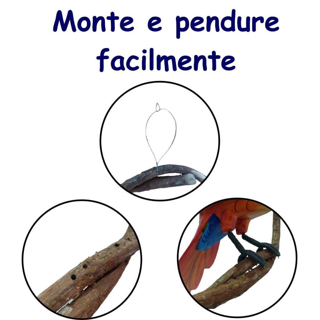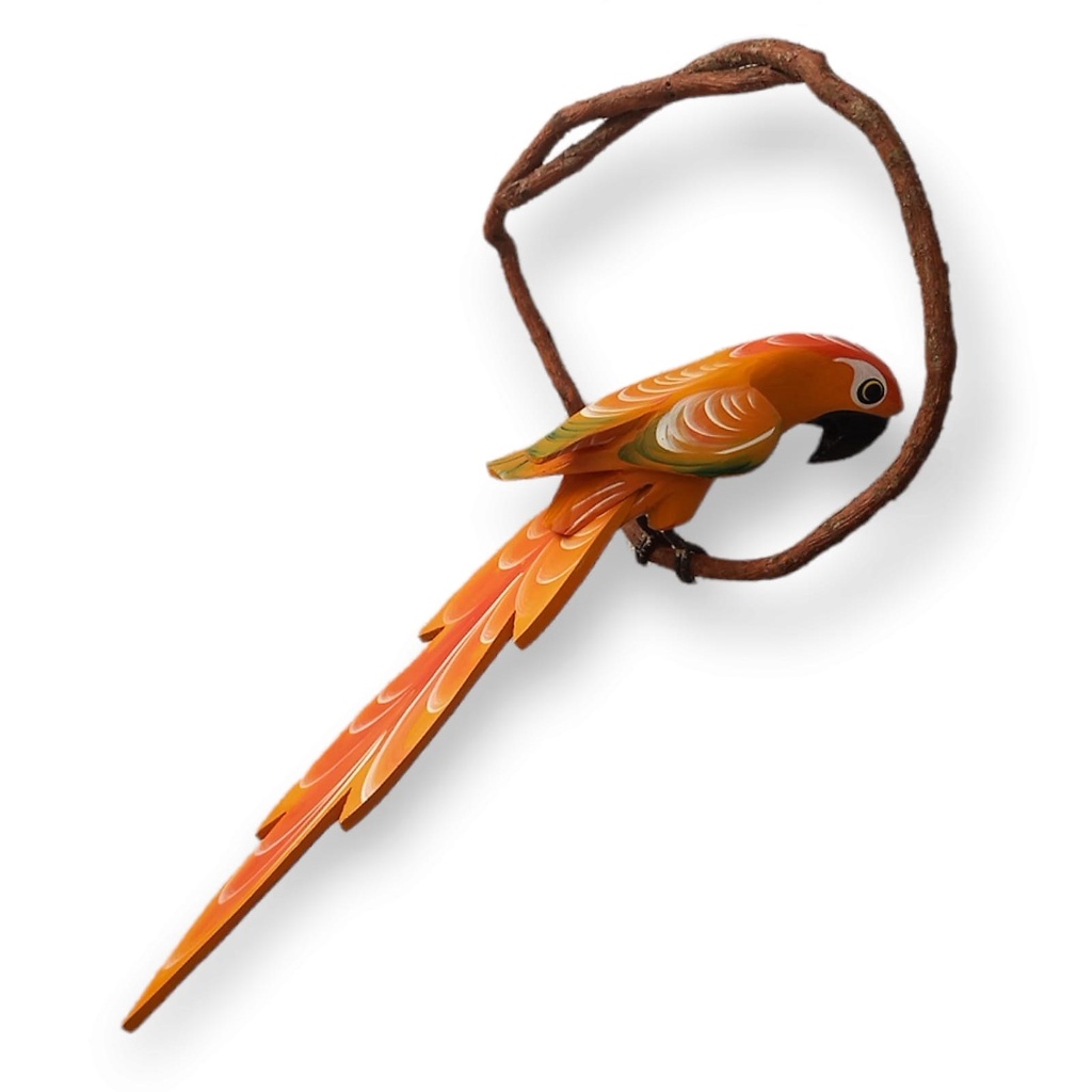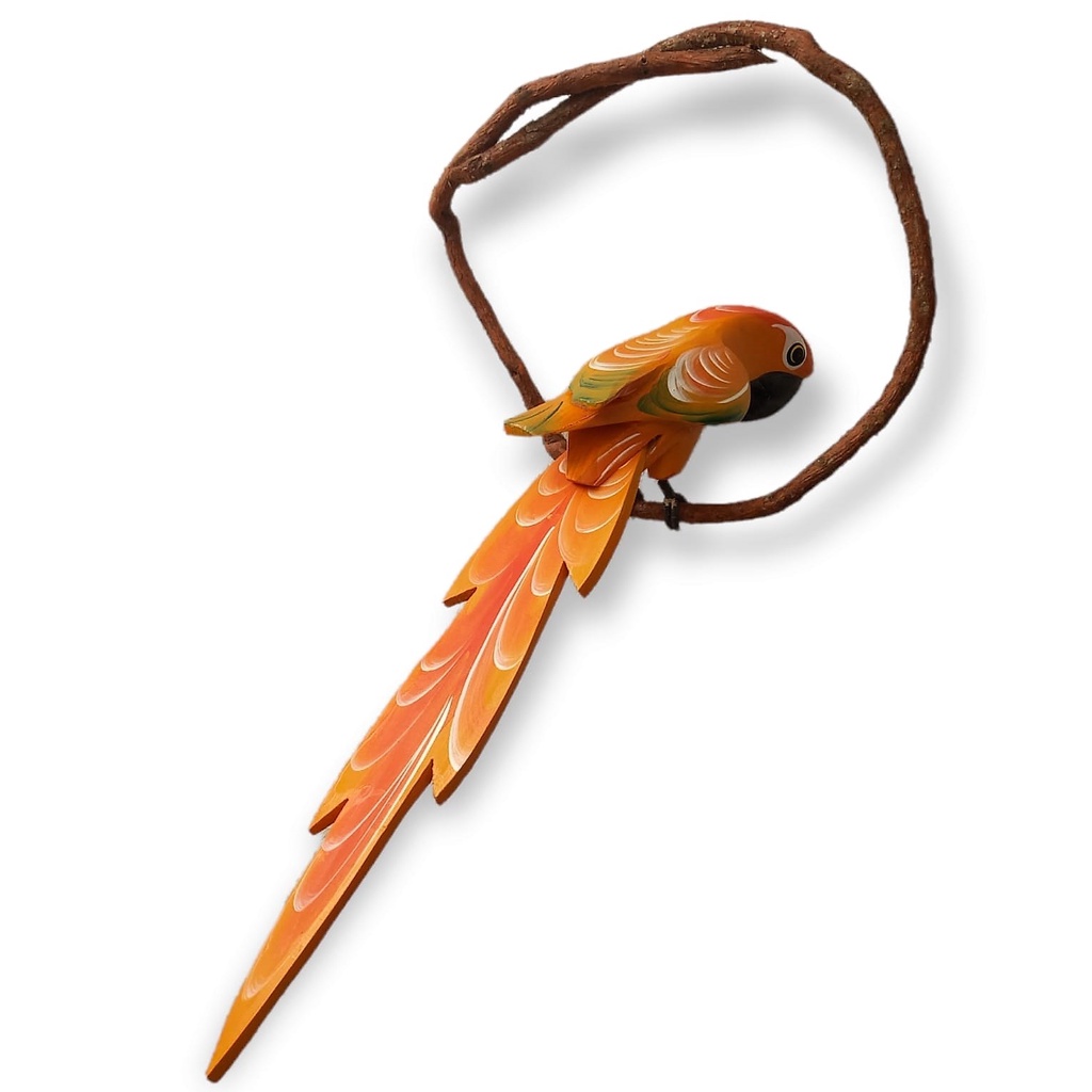 Arara De Galho PP - Amarela C/ Verde - Madeira Para Decorar Seu Jardim Casa Sitio Pomar