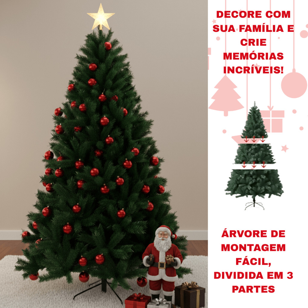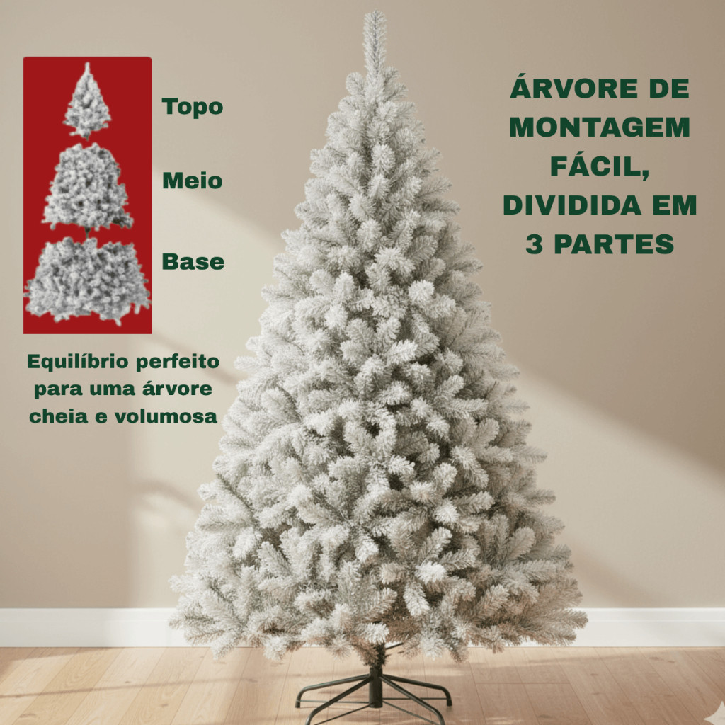 Árvore de Natal Luxo Pinheiro Nevada ou Verde 1,80m 850 Galhos Cheia Premium Decoração Natalina