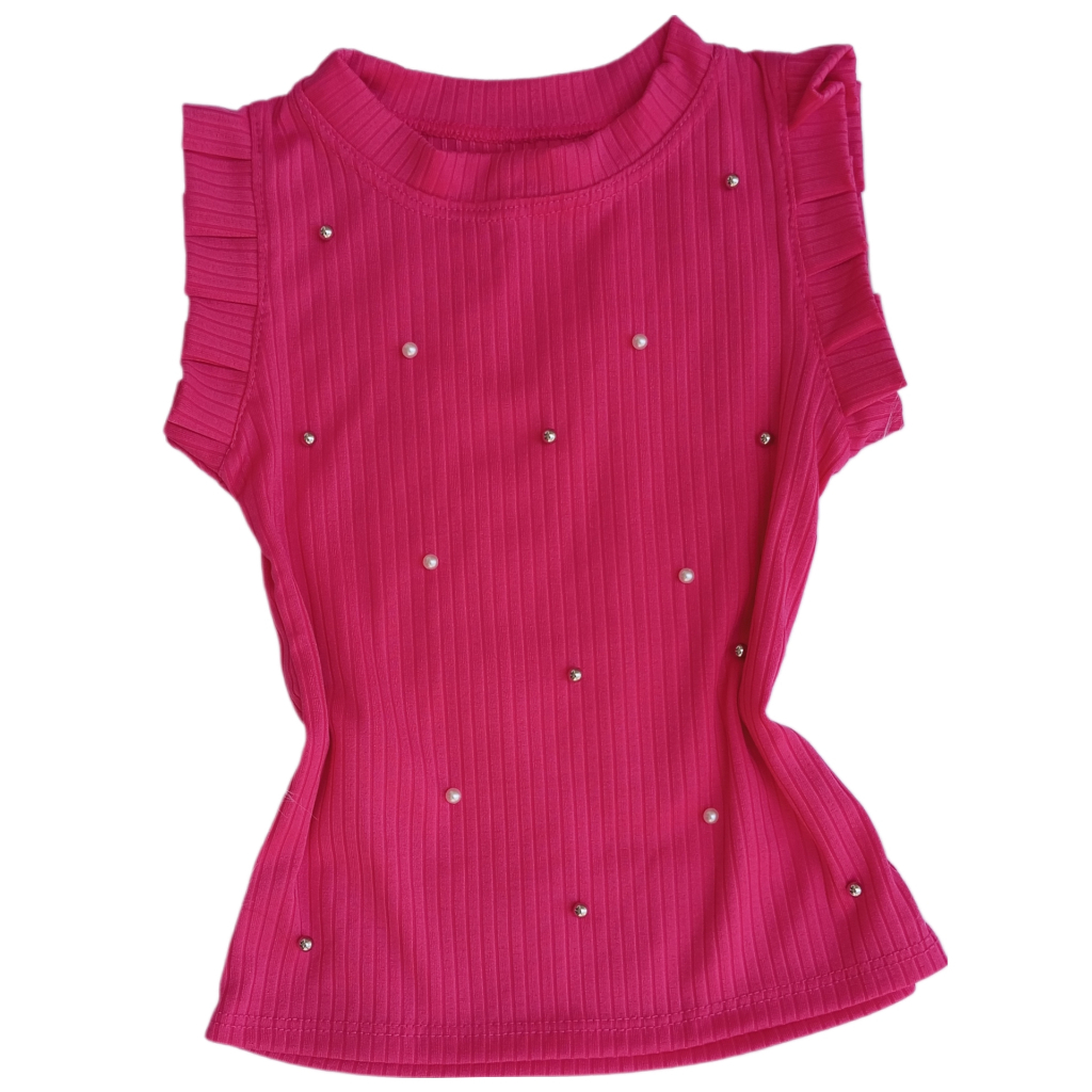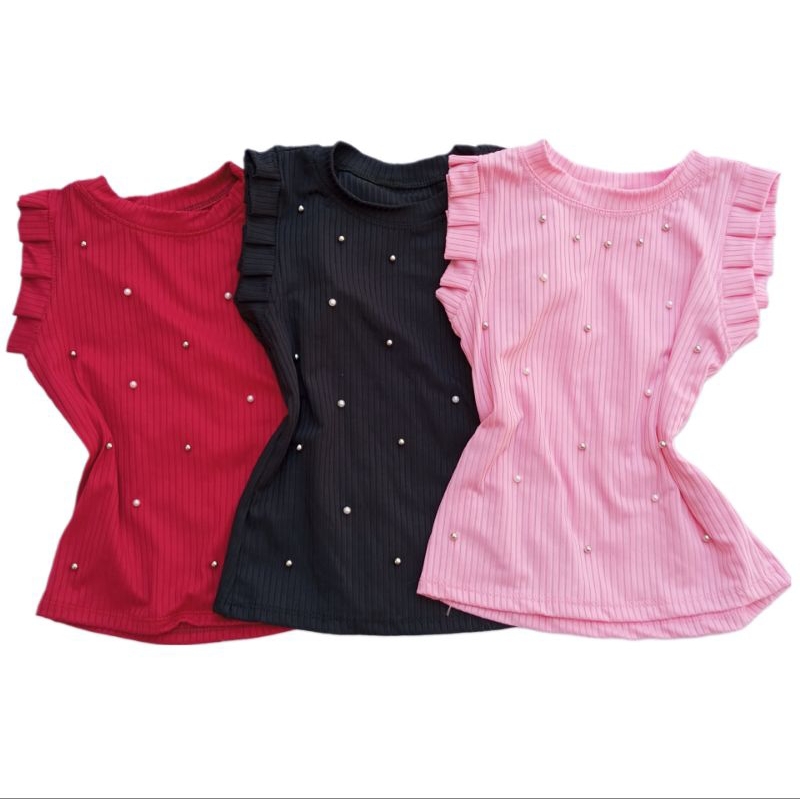 blusinha infantil meninas verão canelada manga babado regata feminina blogueirinha Premium