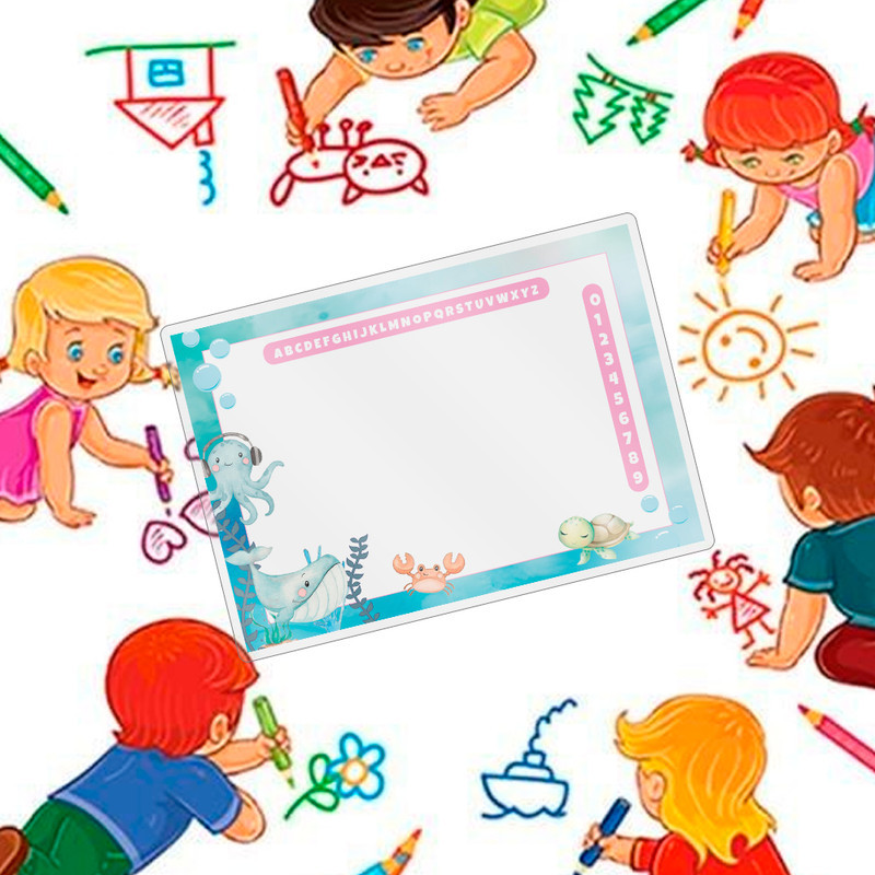 Kit 10 Lousa Mágica Catalogada + Caneta E Apagador Lembrancinha Festa Infantil Fundo Do Mar Aquarela