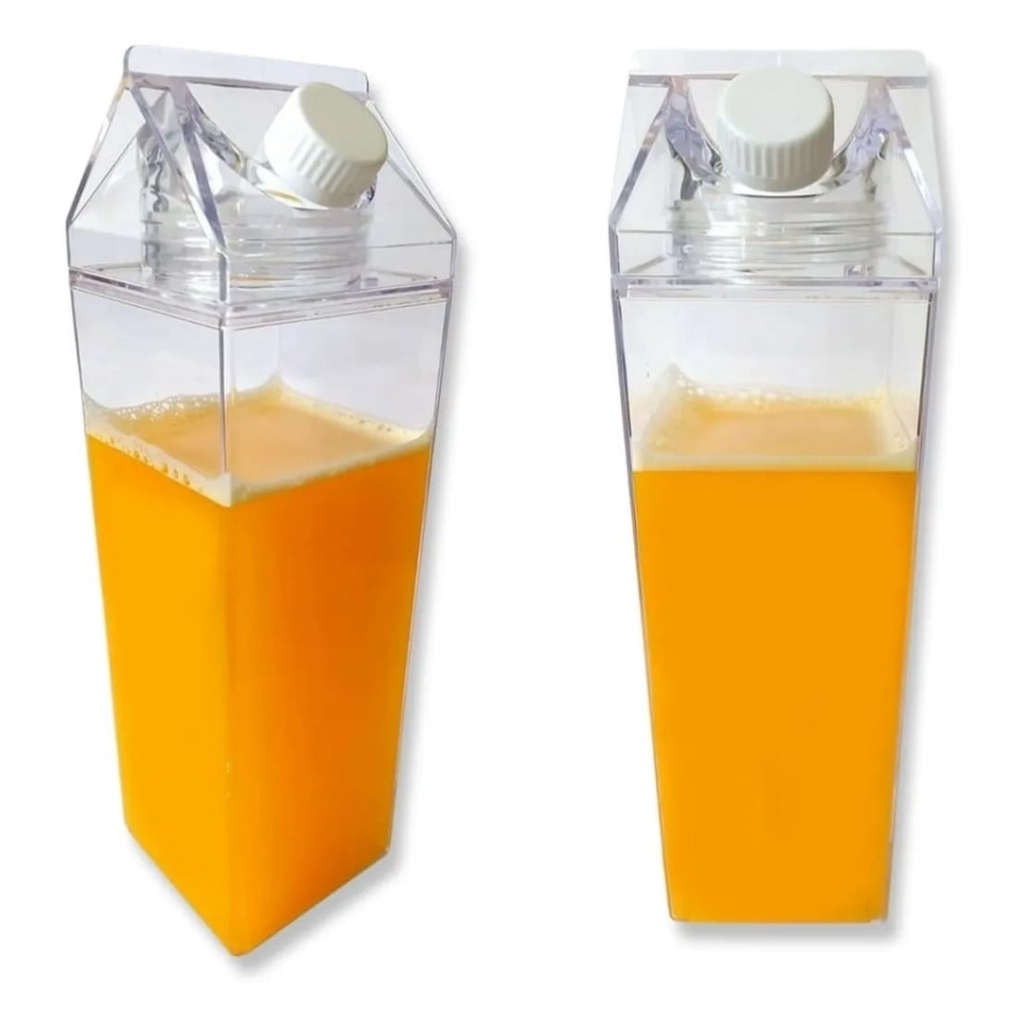 Garrafa Caixa De Leite Suco Acrílica Geladeira Colors Leiteira Portátil 500ml