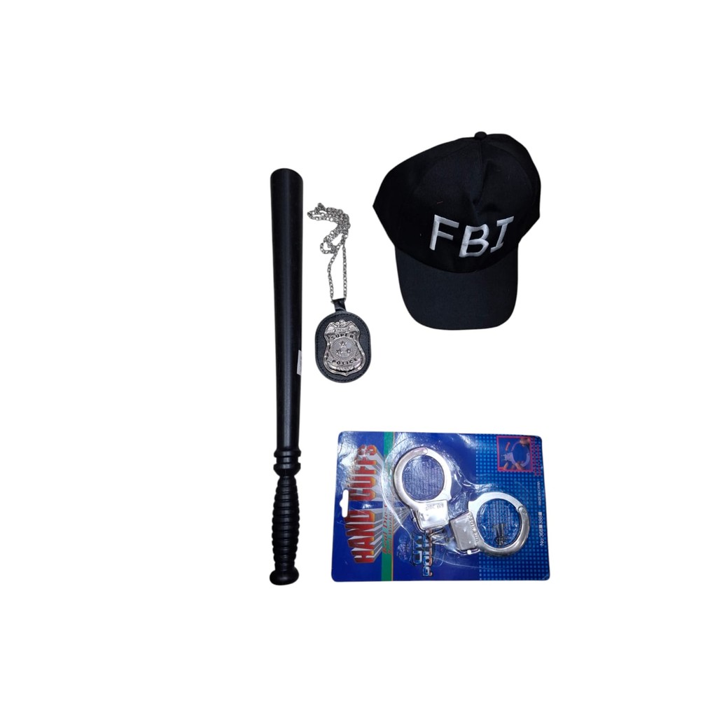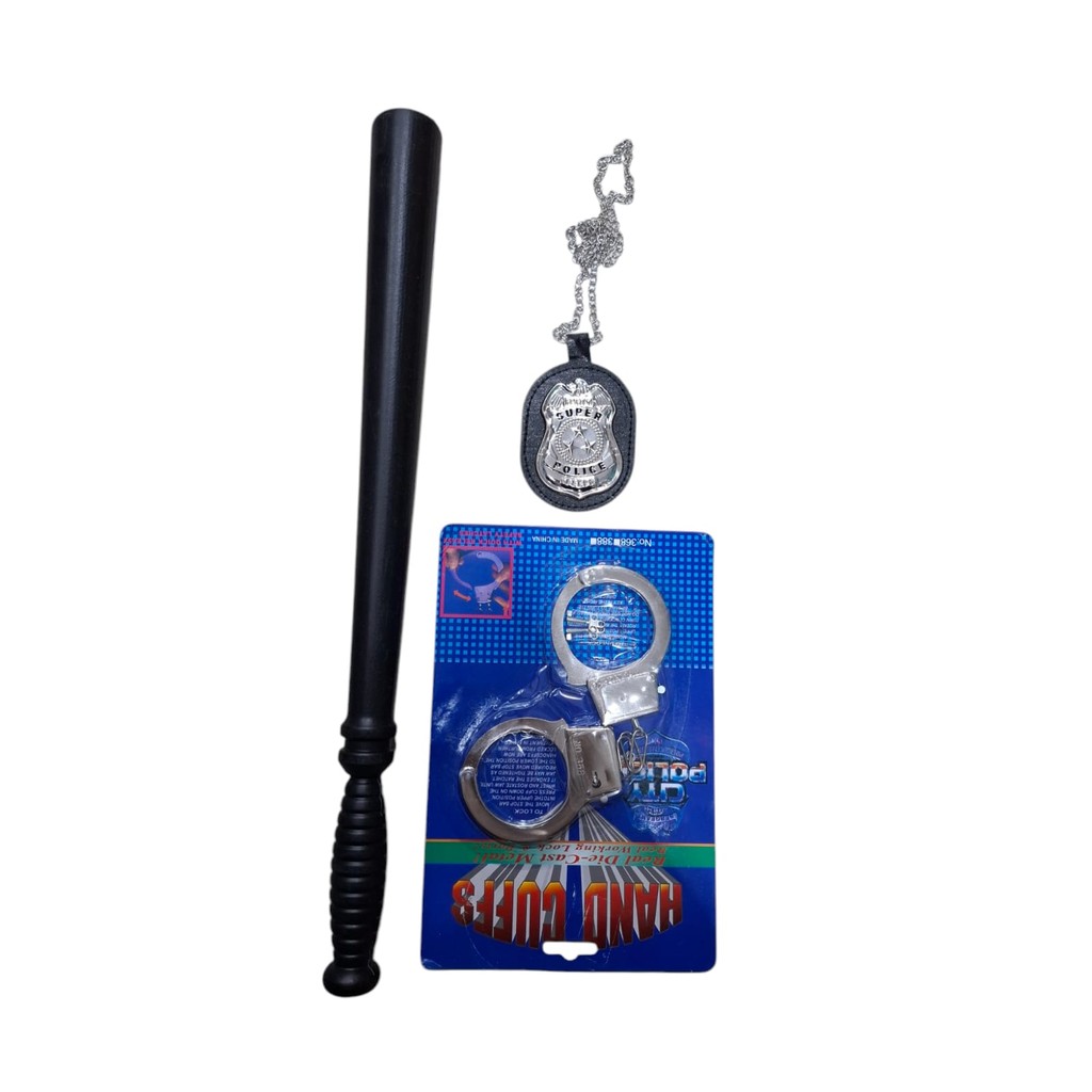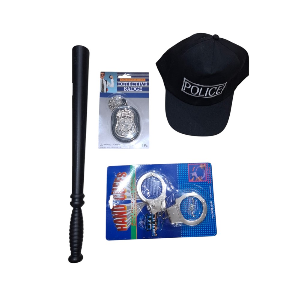 Kit Acessório de Fantasia Policial CASSETETE+ DISTINTIVO + ALGEMA +CHAPEU / BONE pra carnaval e halloween
