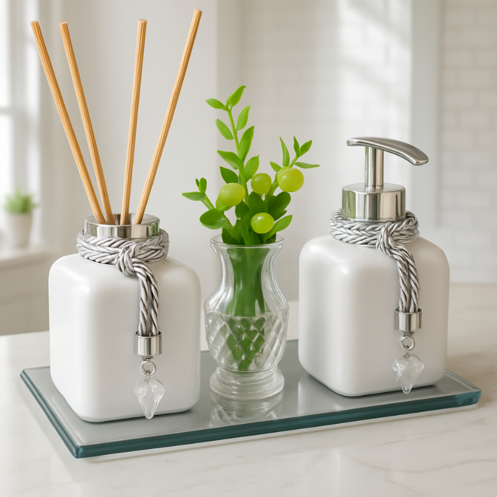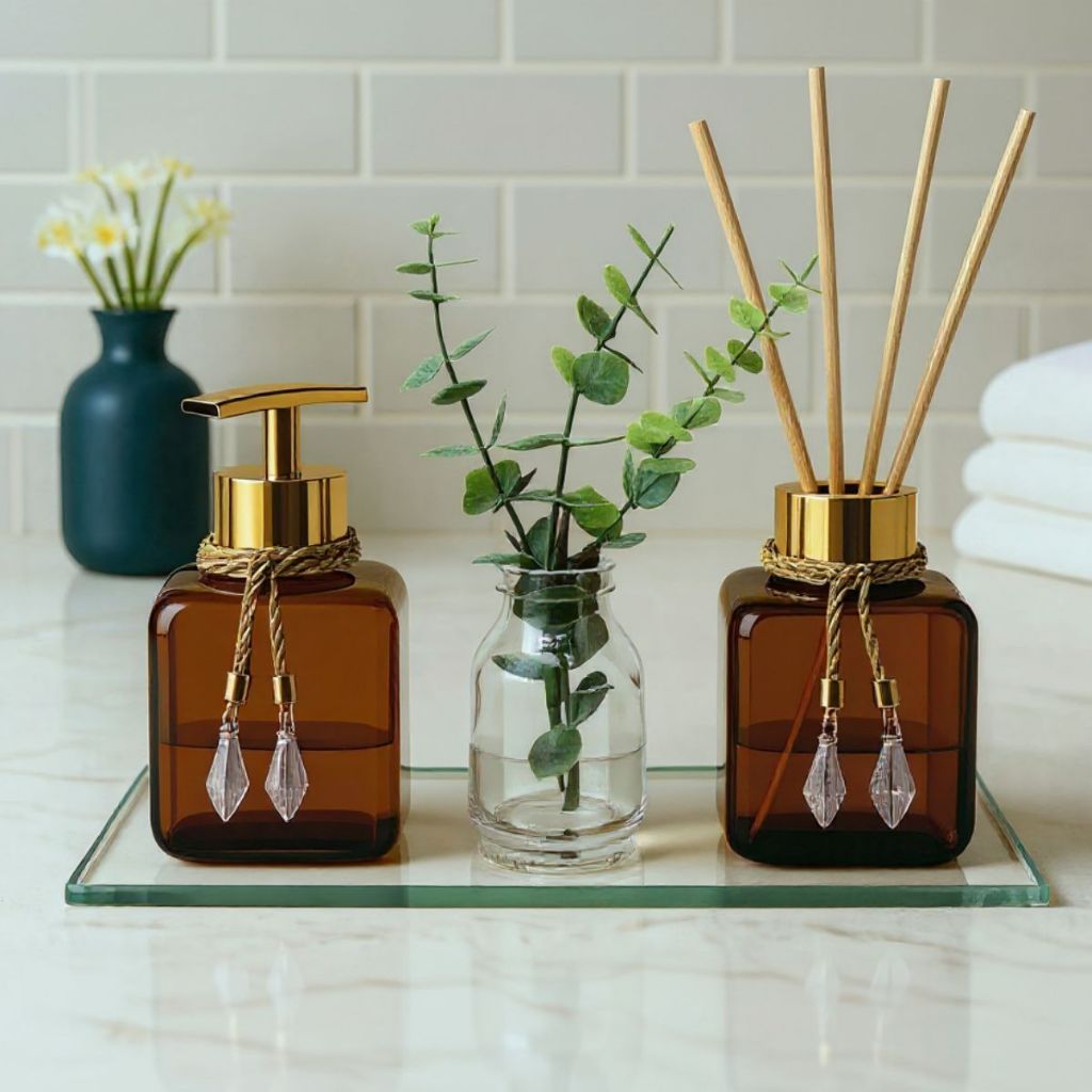 Kit Lavabo Banheiro Luxo c/ Aromatizador Saboneteira 300 ML Vaso Bandeja Moderna