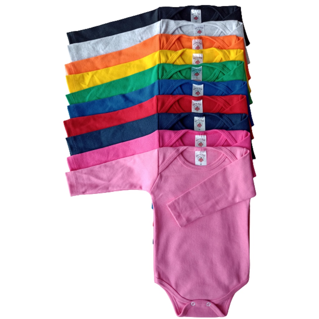 Body Bebê Suedine 100% Algodão - Manga Longa - Infantil - Cores Variadas