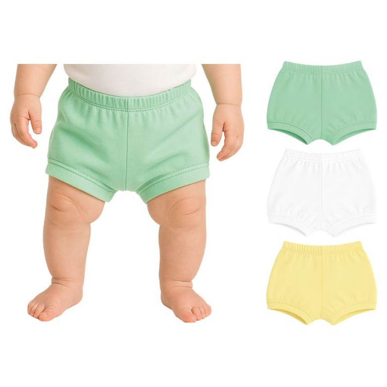 Kit c/3 Shorts Bebê - 100% Algodão - Suedine