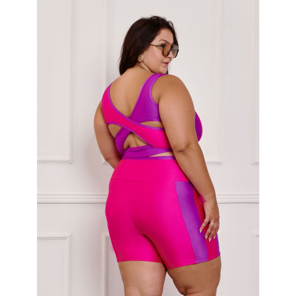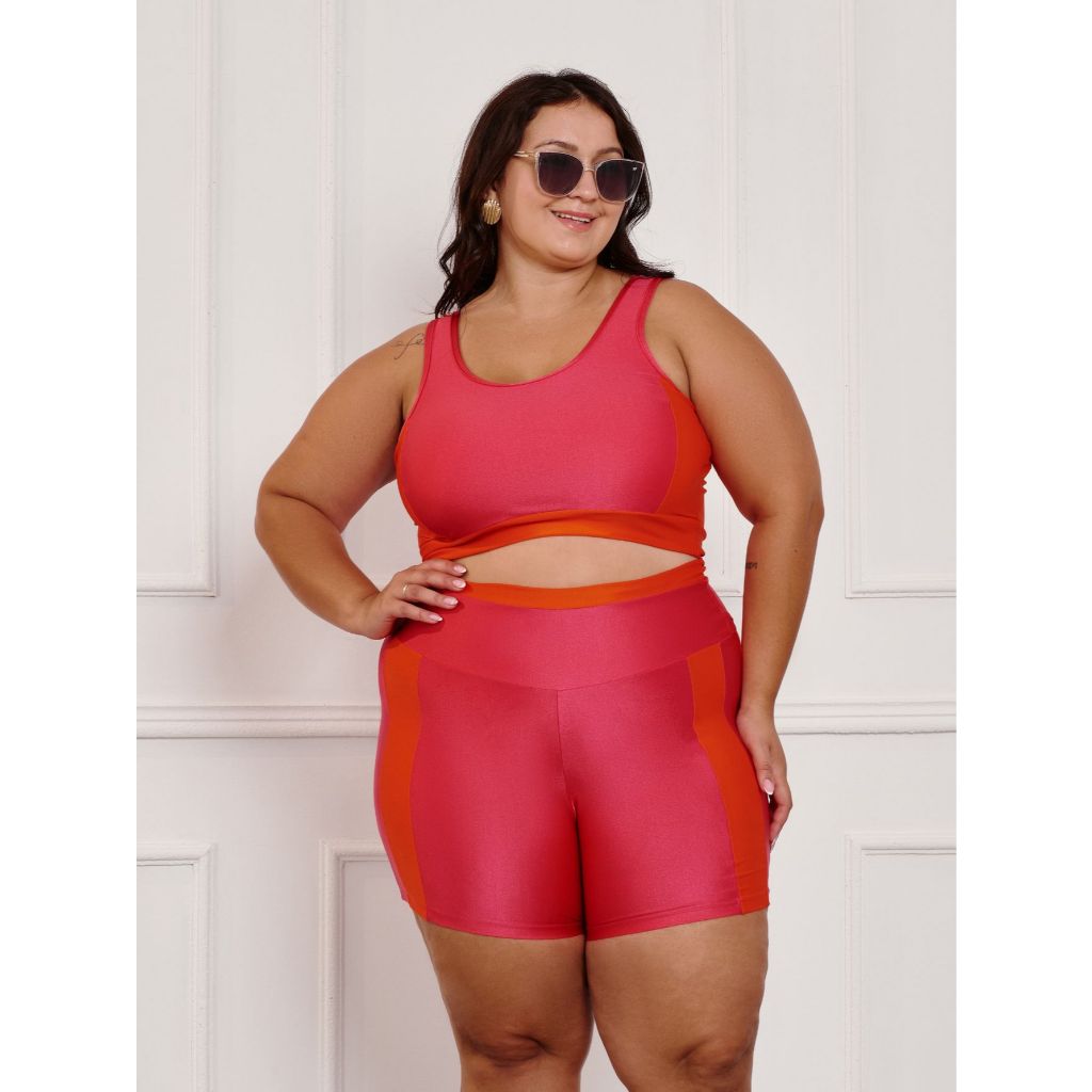 Conjunto Fitness Brilhoso Bermuda + Top S/bojo Plus Size Academia 11198/11197