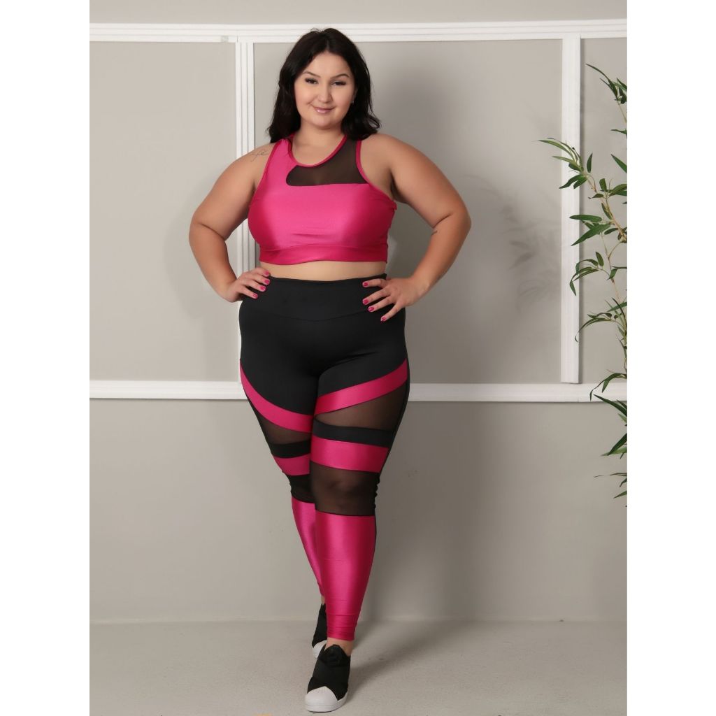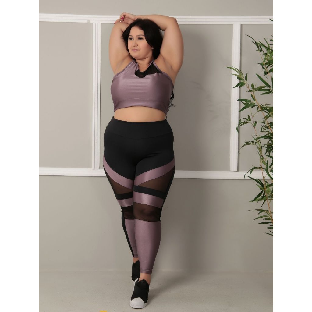 Conjunto Plus Size Calça + Top Detalhe em Tule Academia Fitness 11060/11061