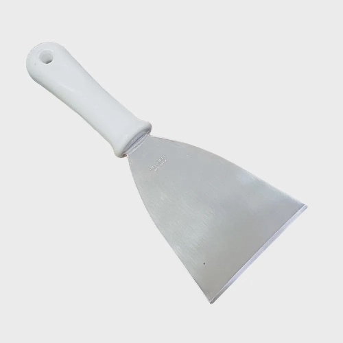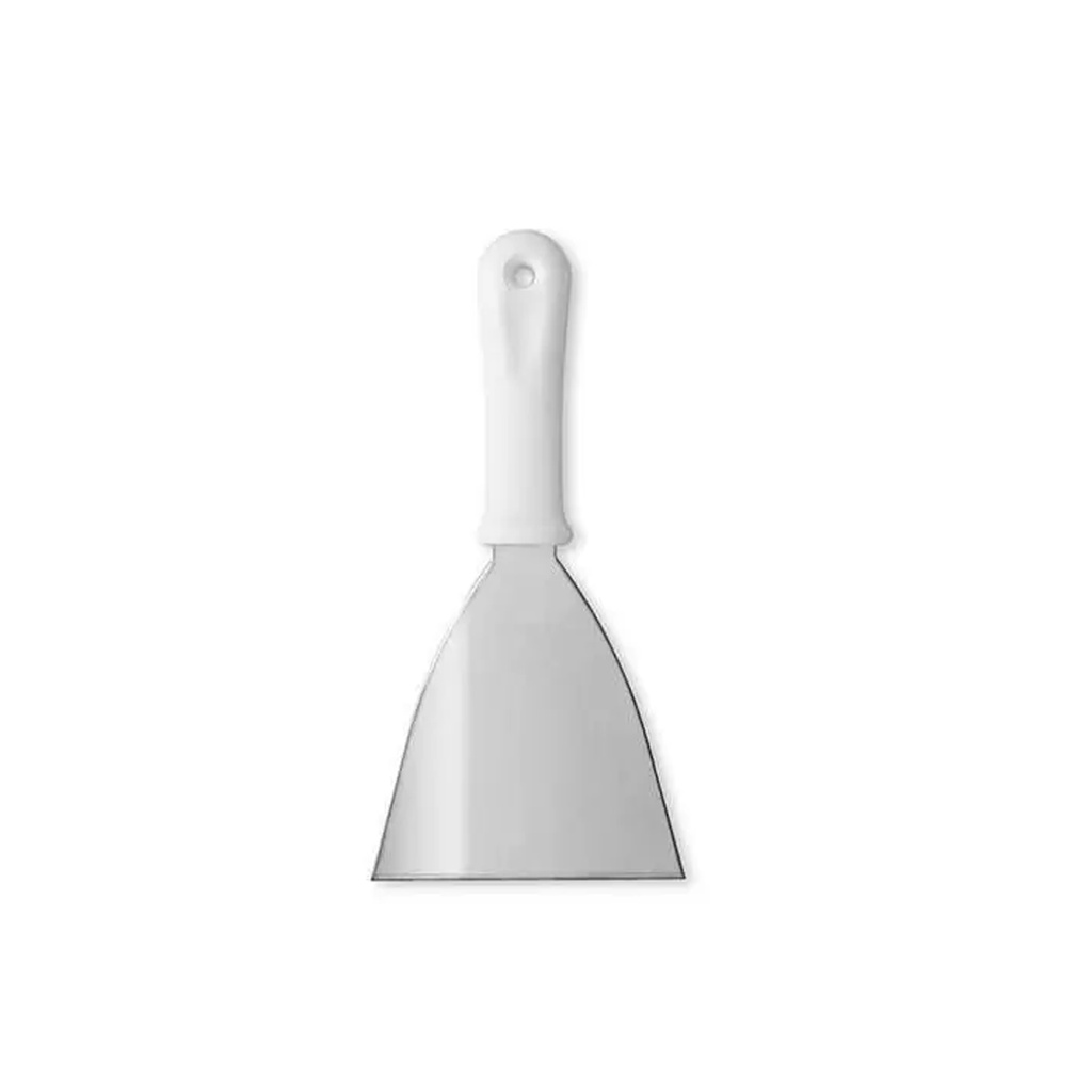 Espátula de Aço para cozinhar - chapa reta com Cabo de Plástico. Possui perfuração para pendurar