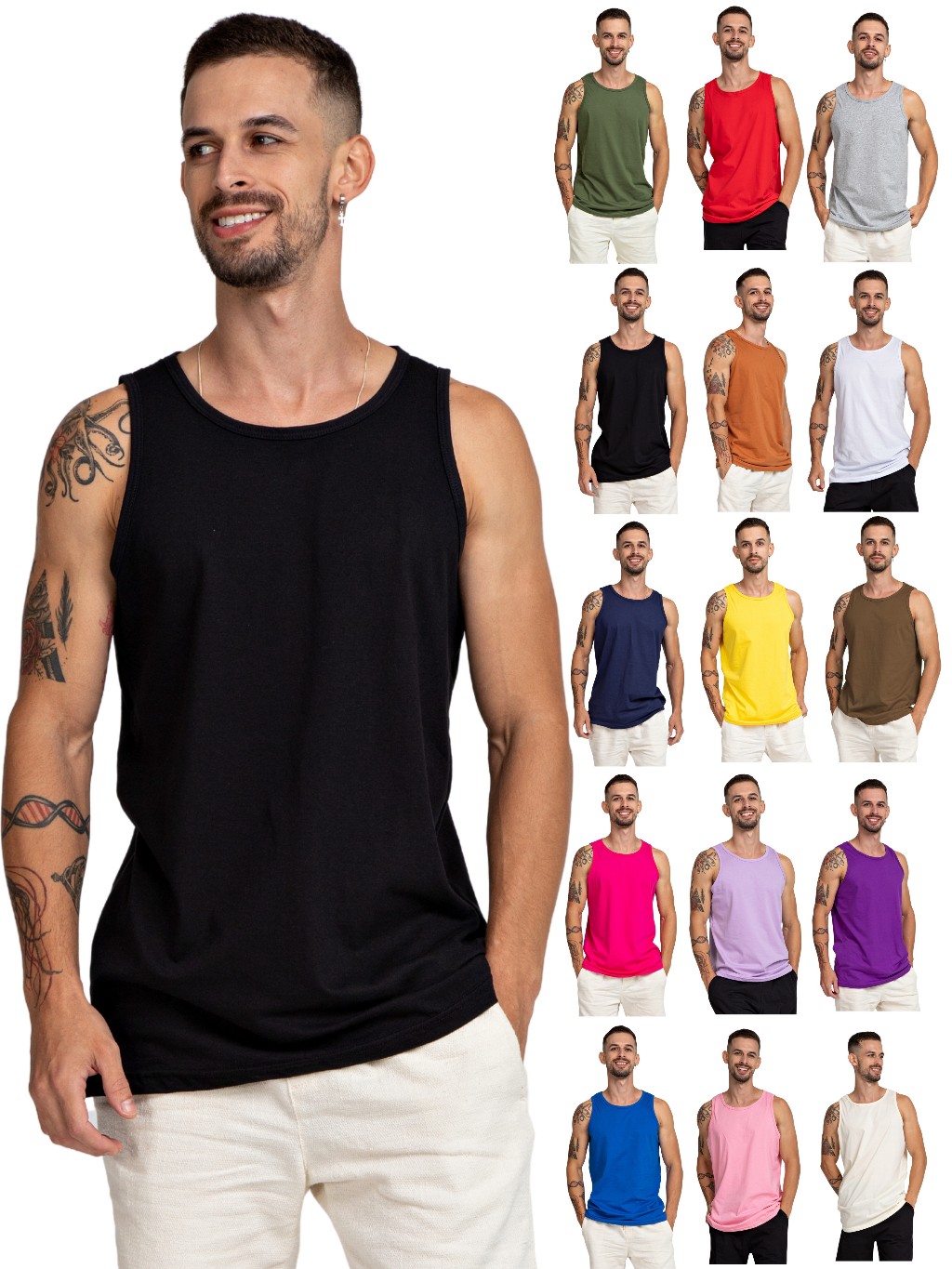 Regata Masculina 100% Algodão Lisa Academia Várias Cores