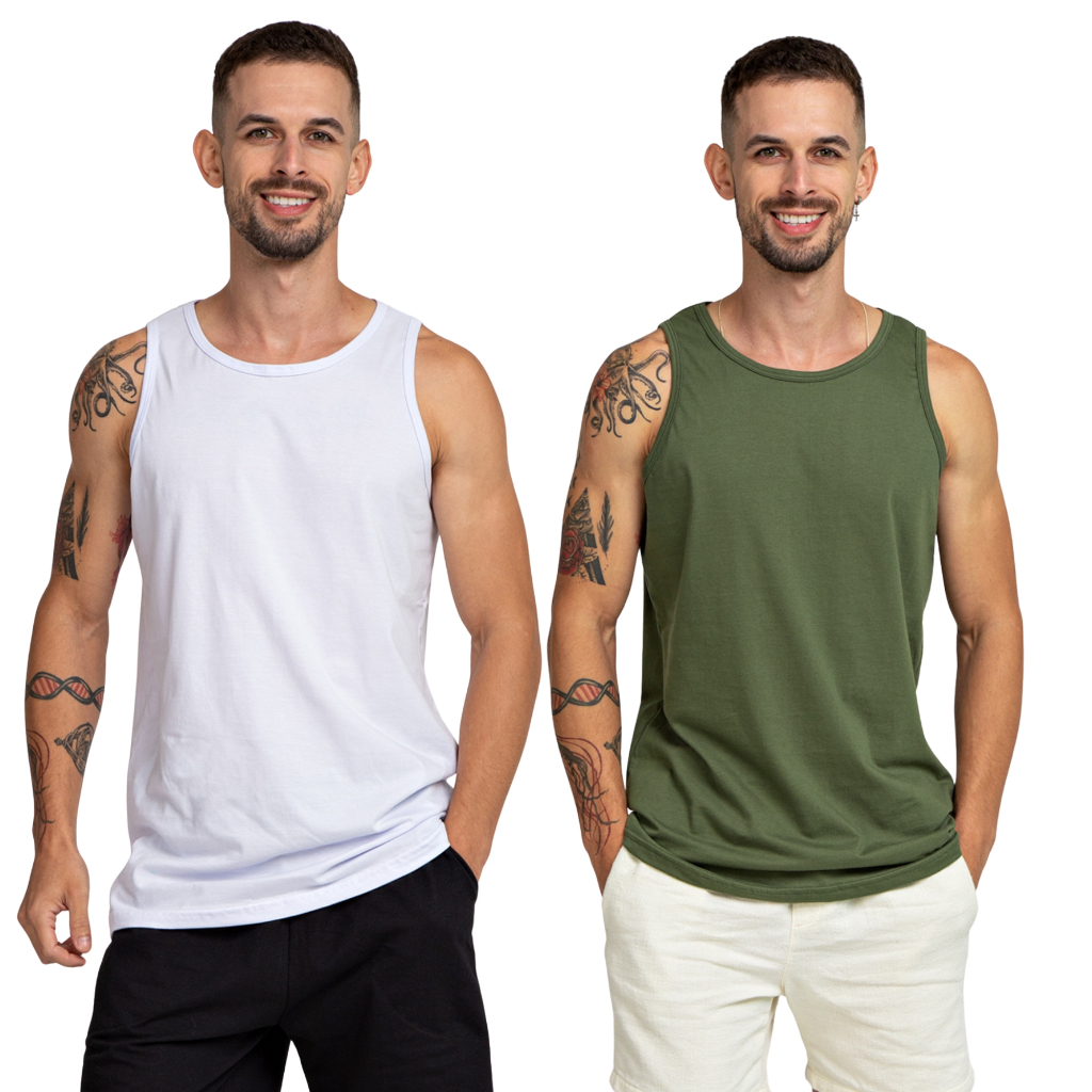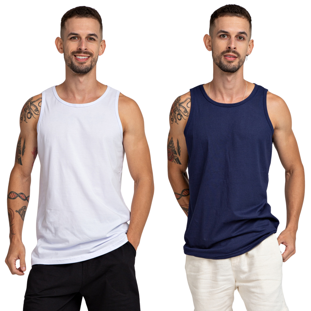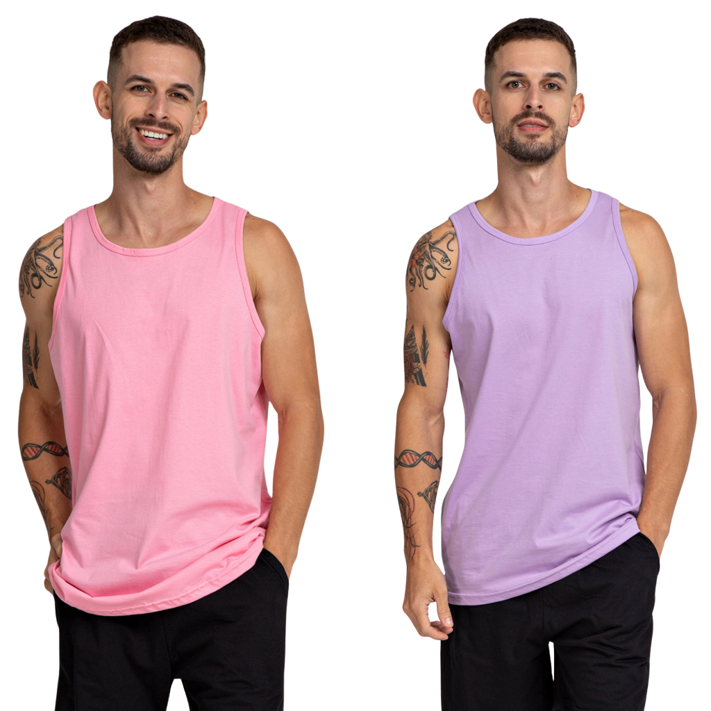 Kit 2 Regatas Masculinas Algodão Academia Várias Cores